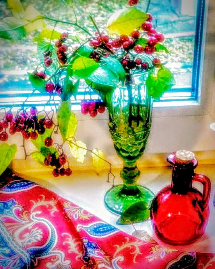 Первое впечатление, без раздумий, зеленые вихри и красные на платке.