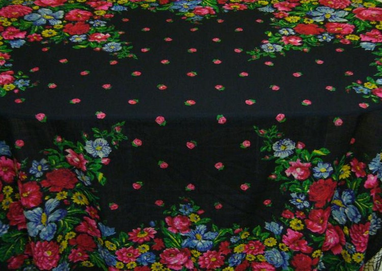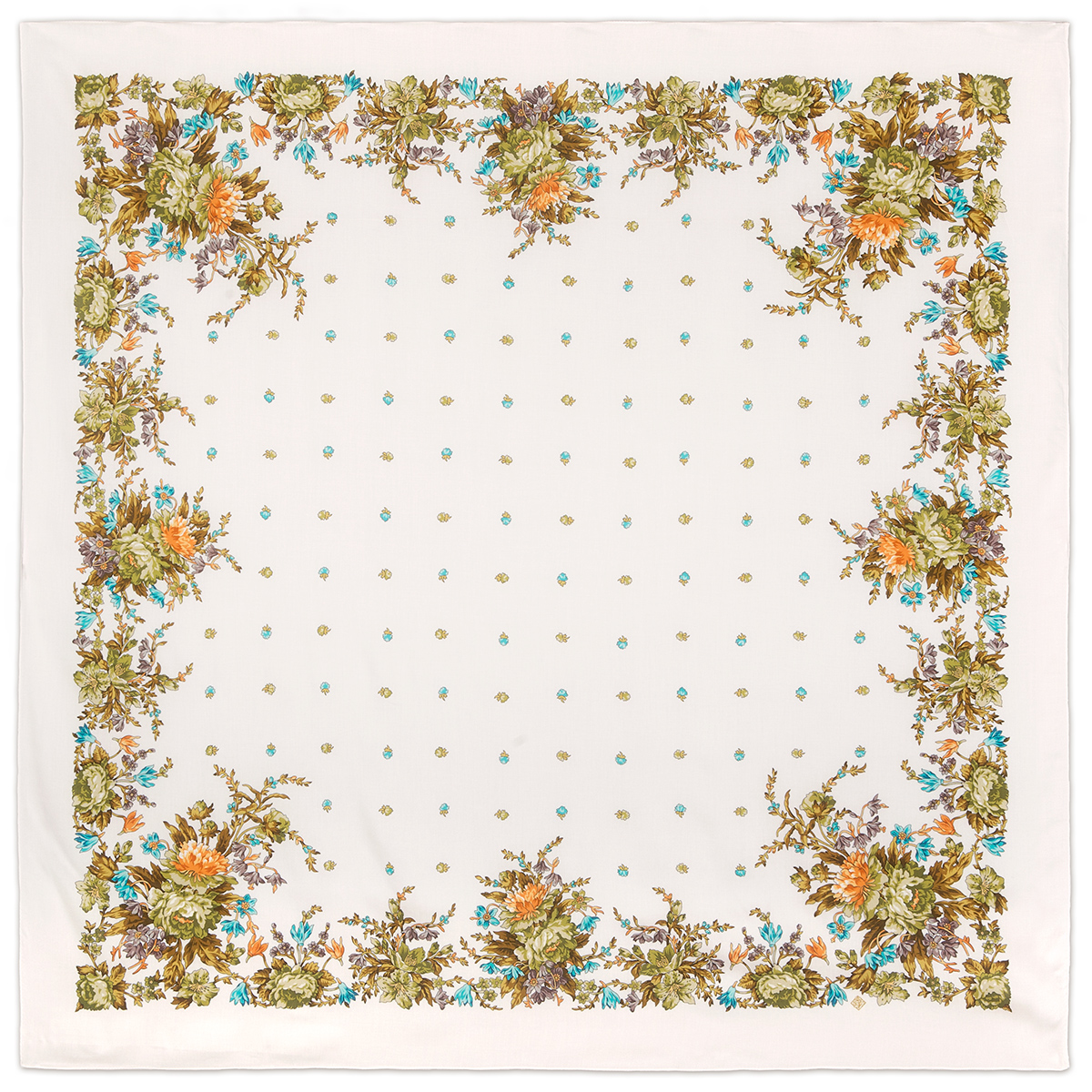 Платочек шерстяной с деталями популярного рисунка "Ежевика" с георгинами, но без ежевики.