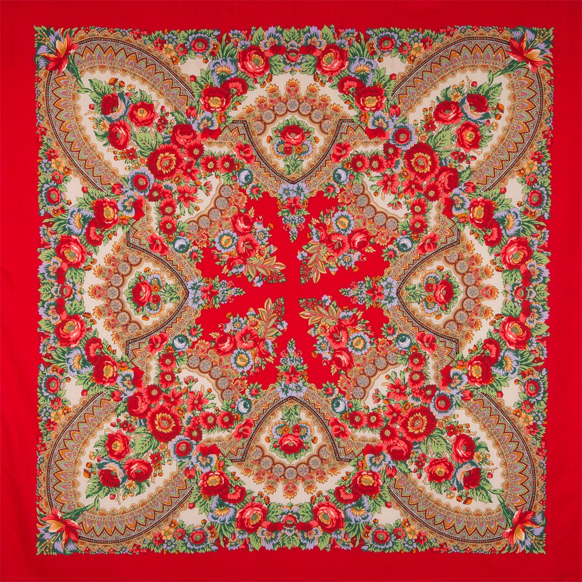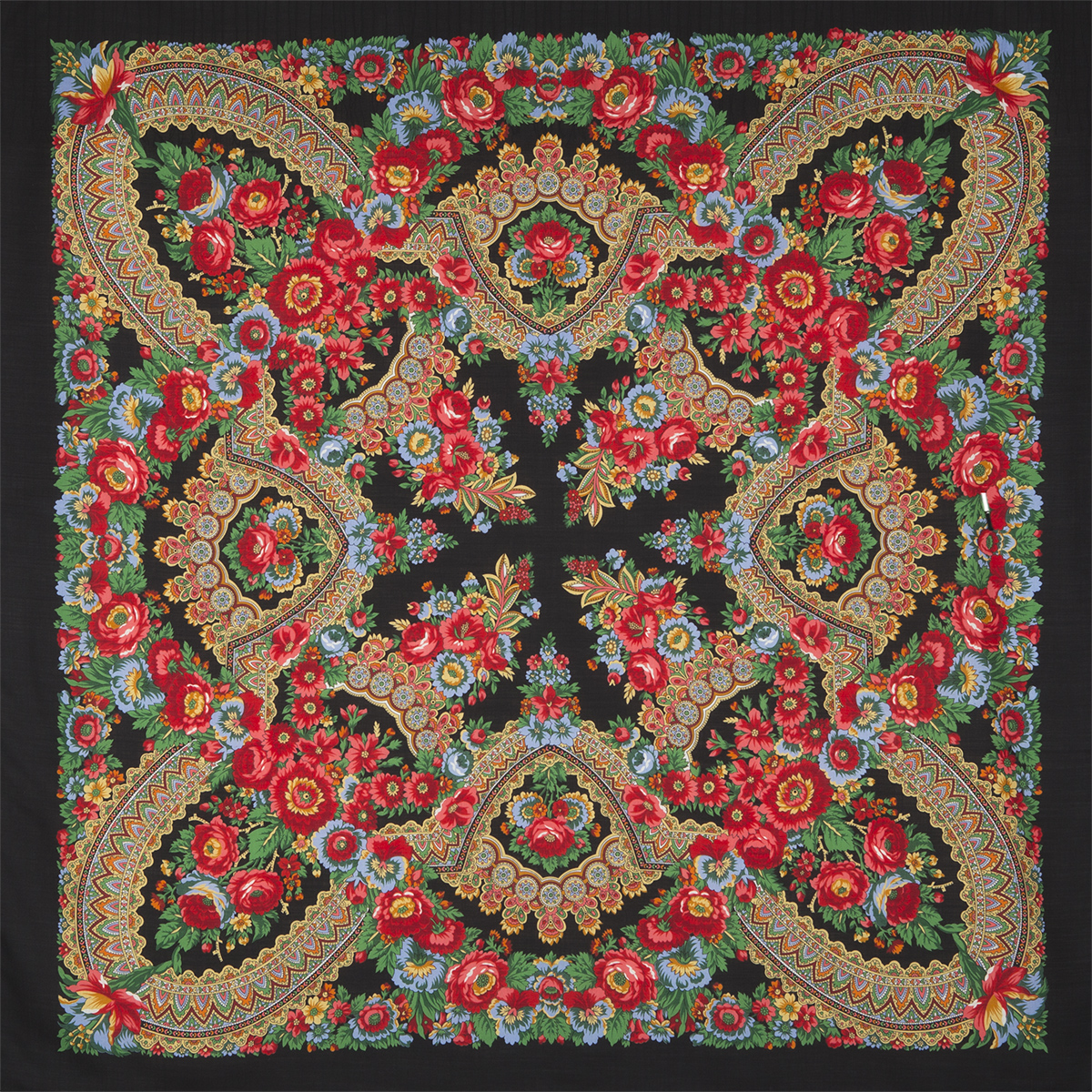Шаль с традиционным цветочным мотивом "кайма из роз"