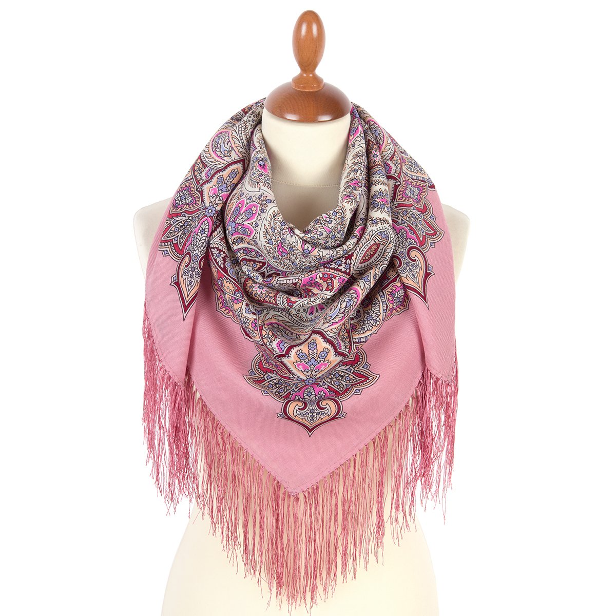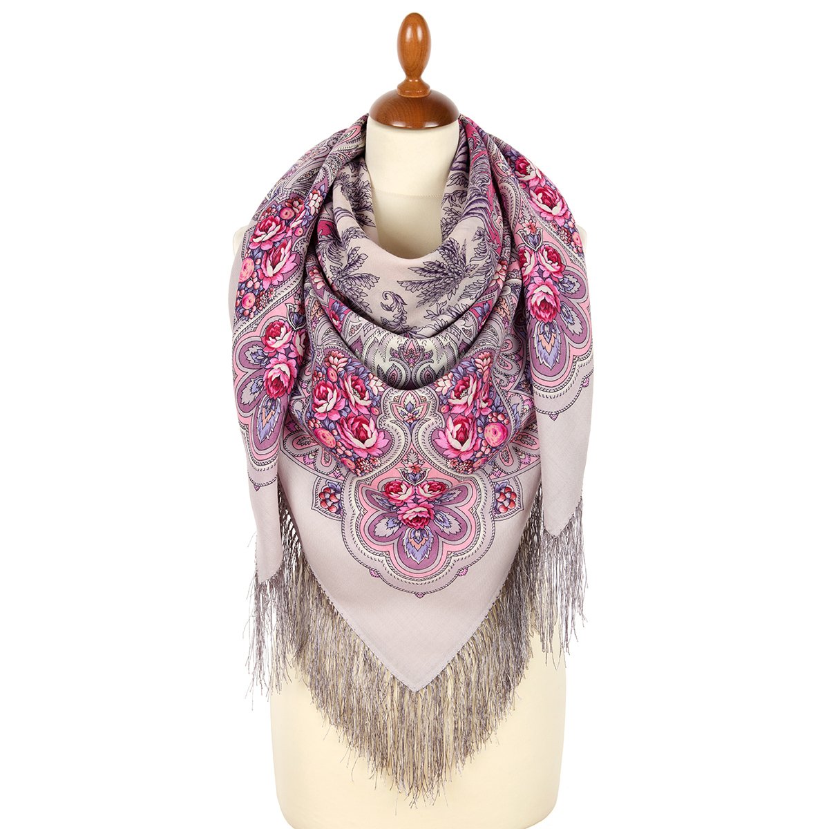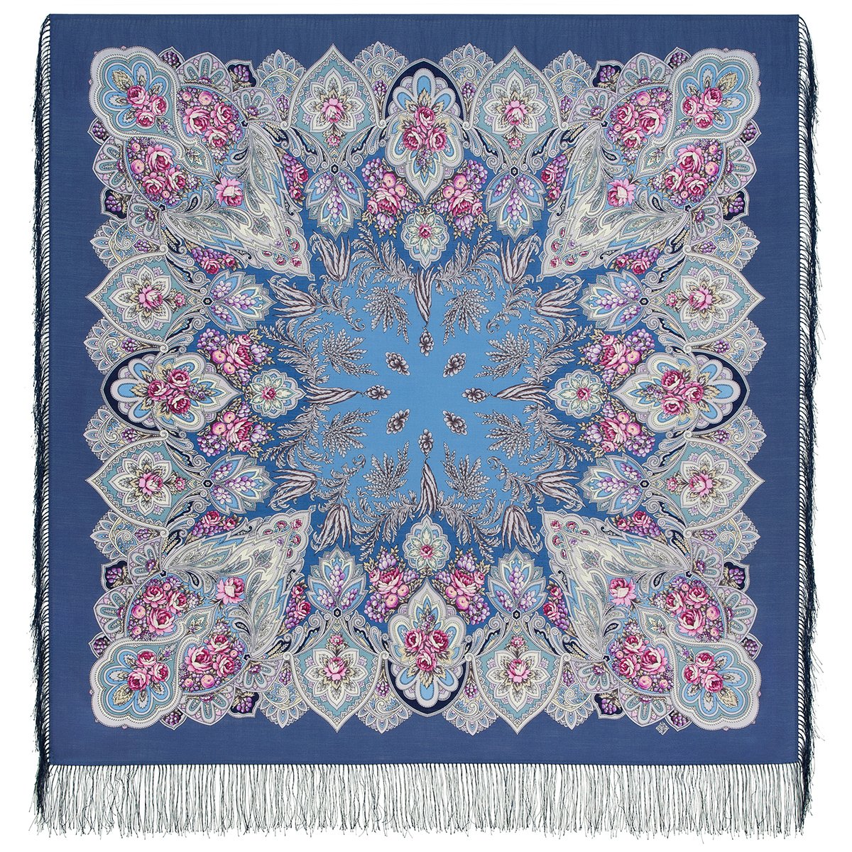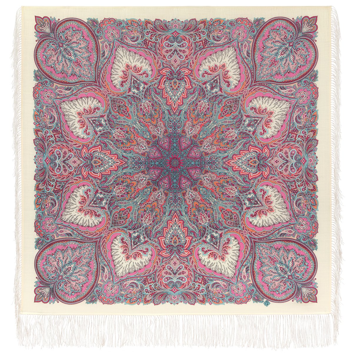 Платок шерстяной с шелковой бахромой, 110х110 см