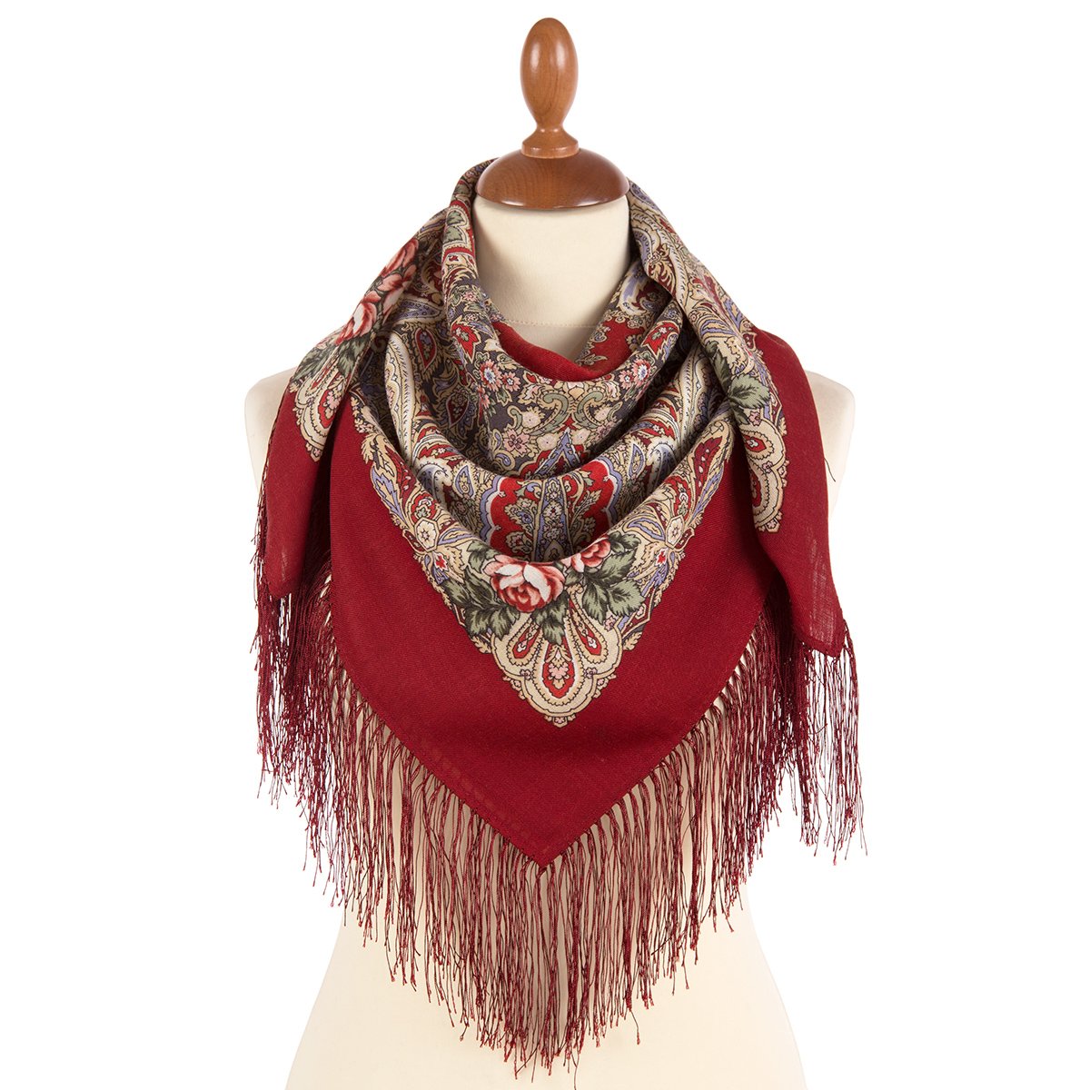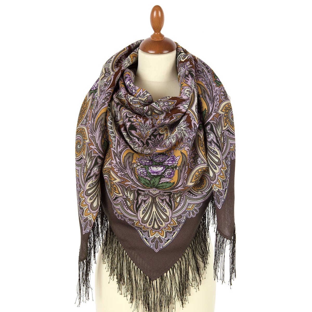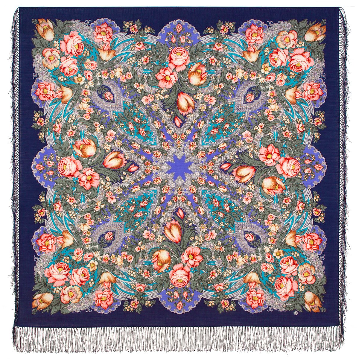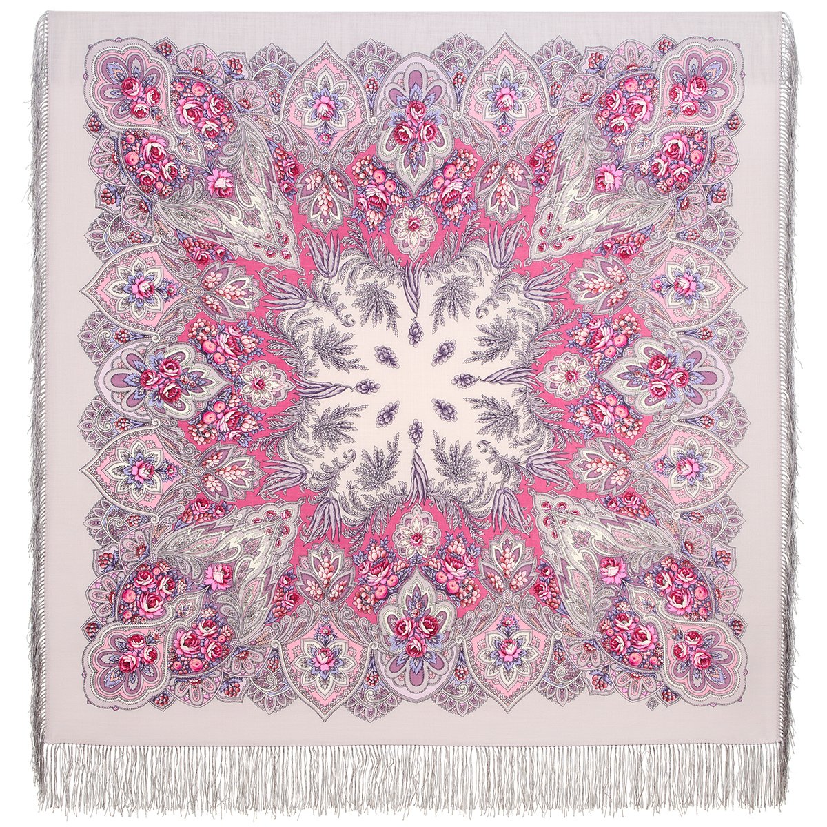 Платок шерстяной с шелковой бахромой, 110х110 см