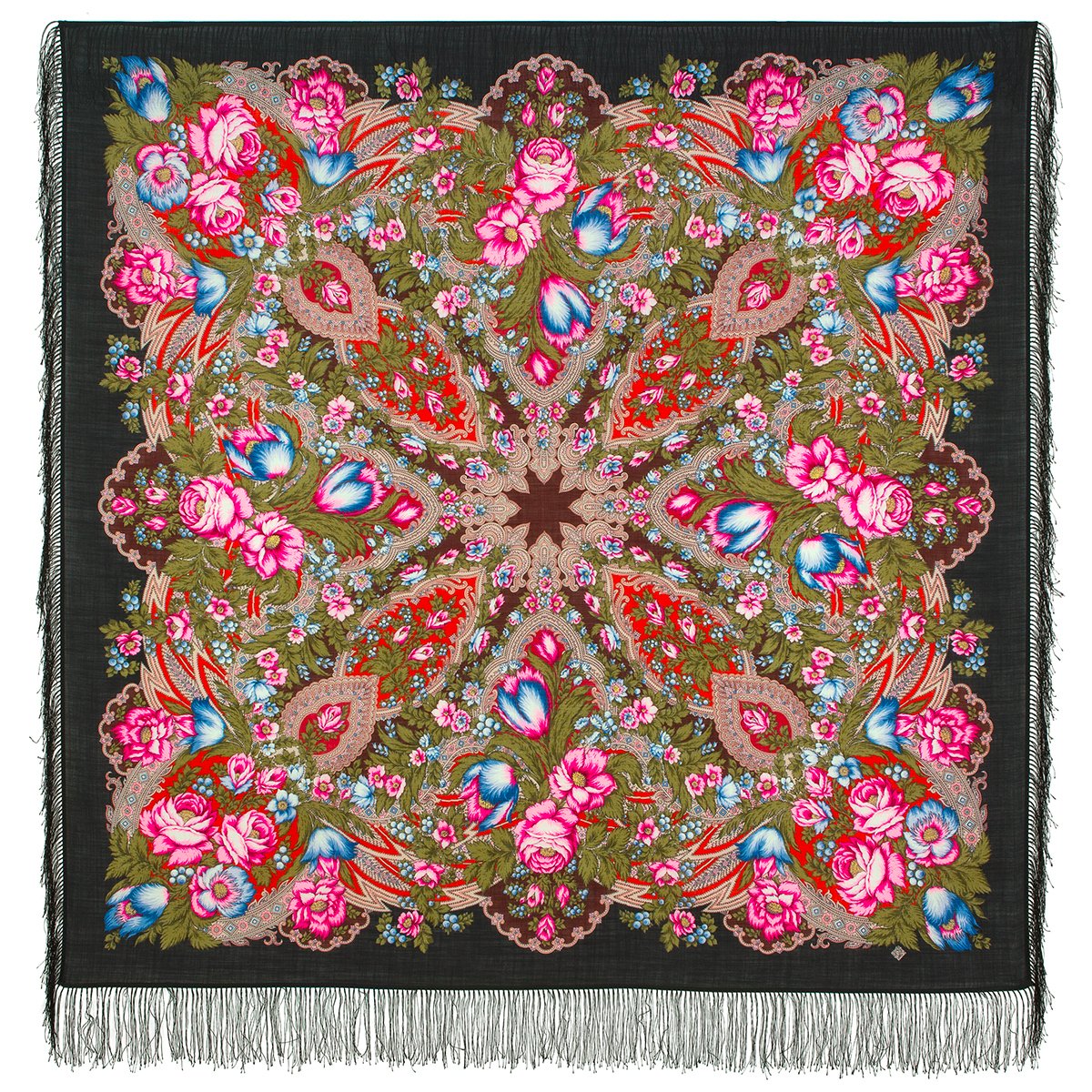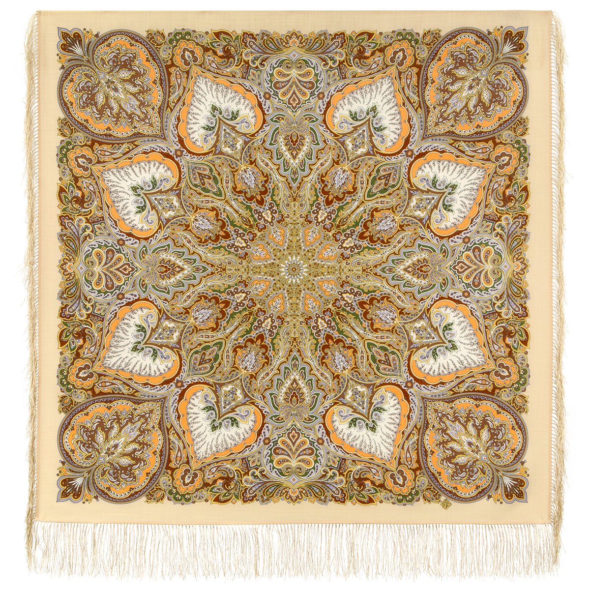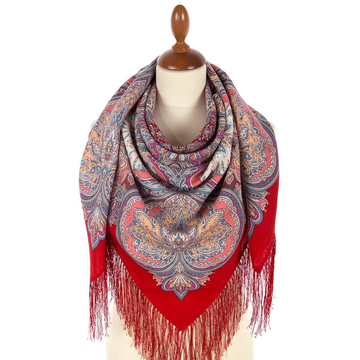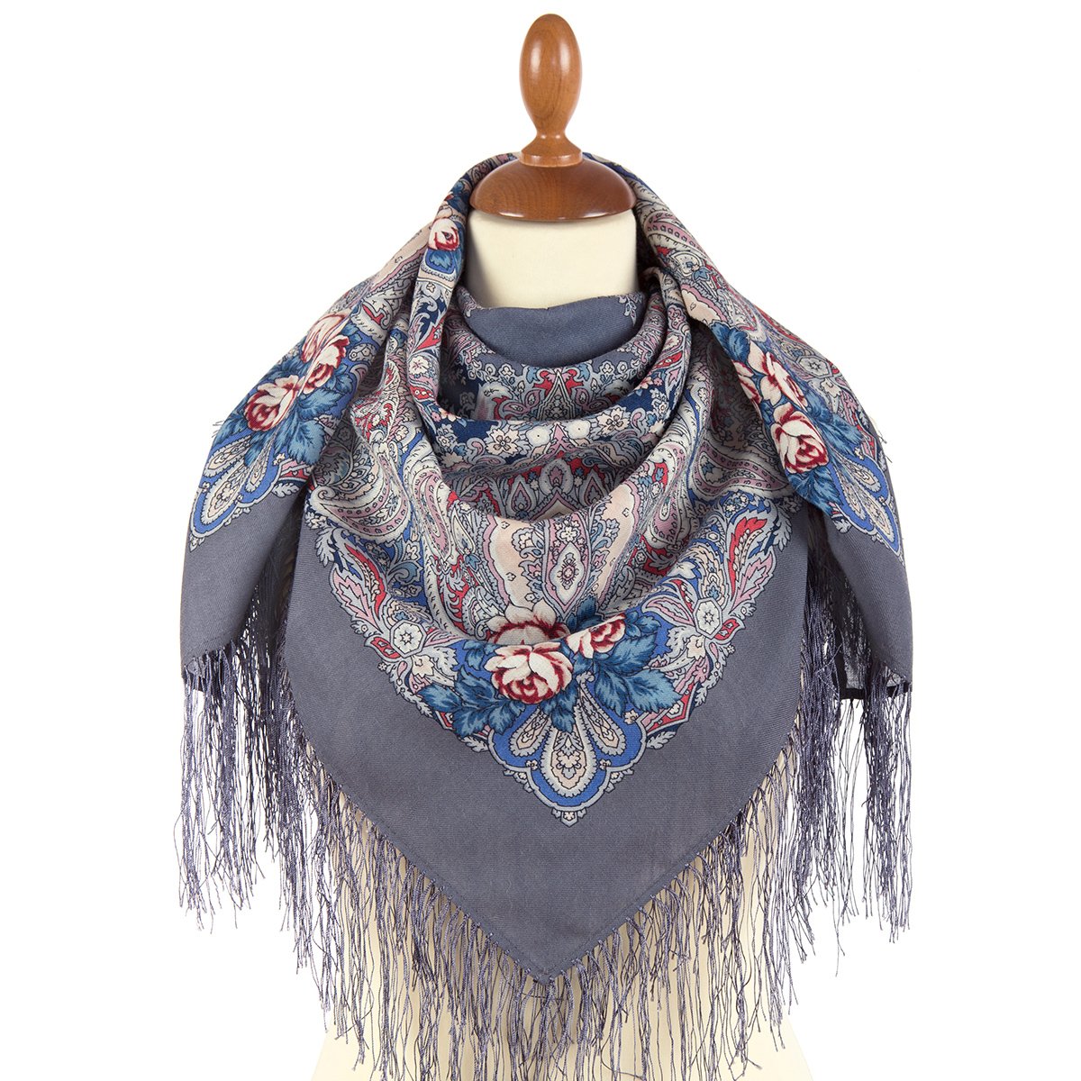 Платок шерстяной с шелковой бахромой, 110х110 см