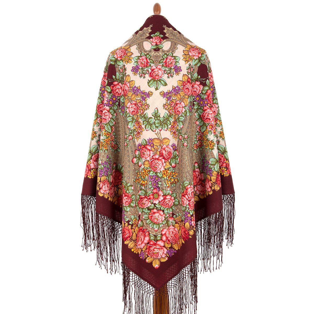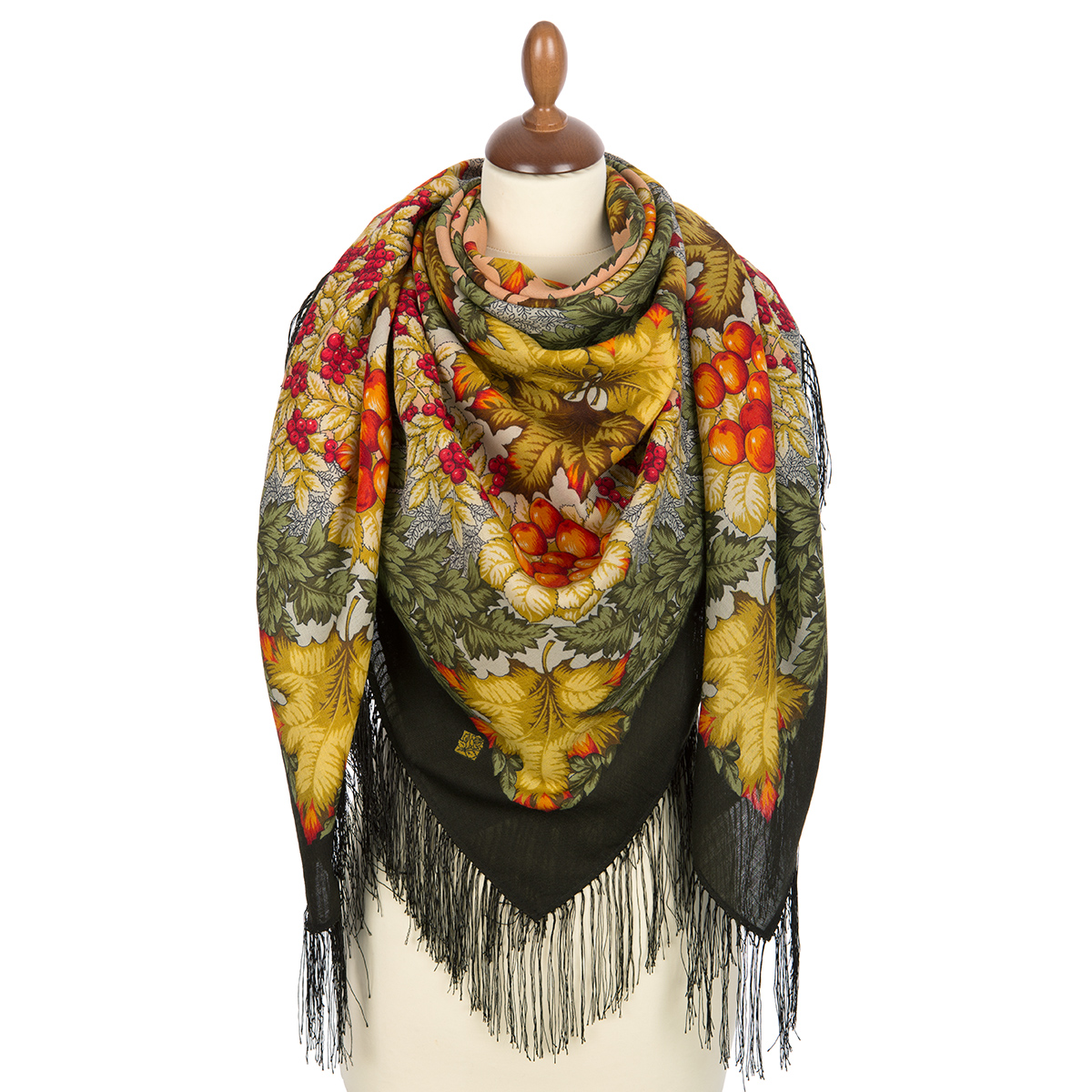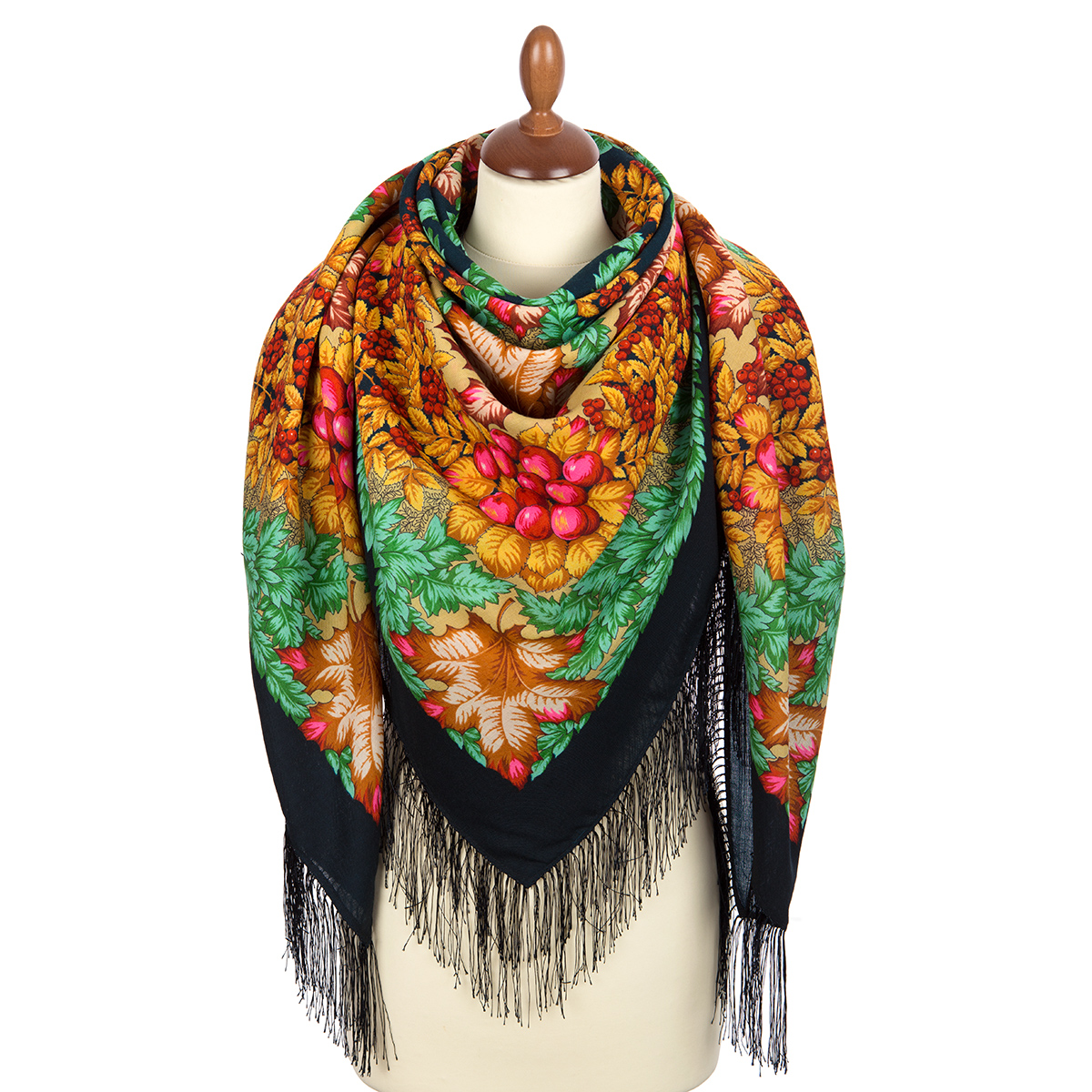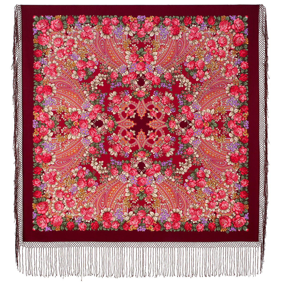 Платок из уплотненной шерстяной ткани с шелковой бахромой, 148х148 см