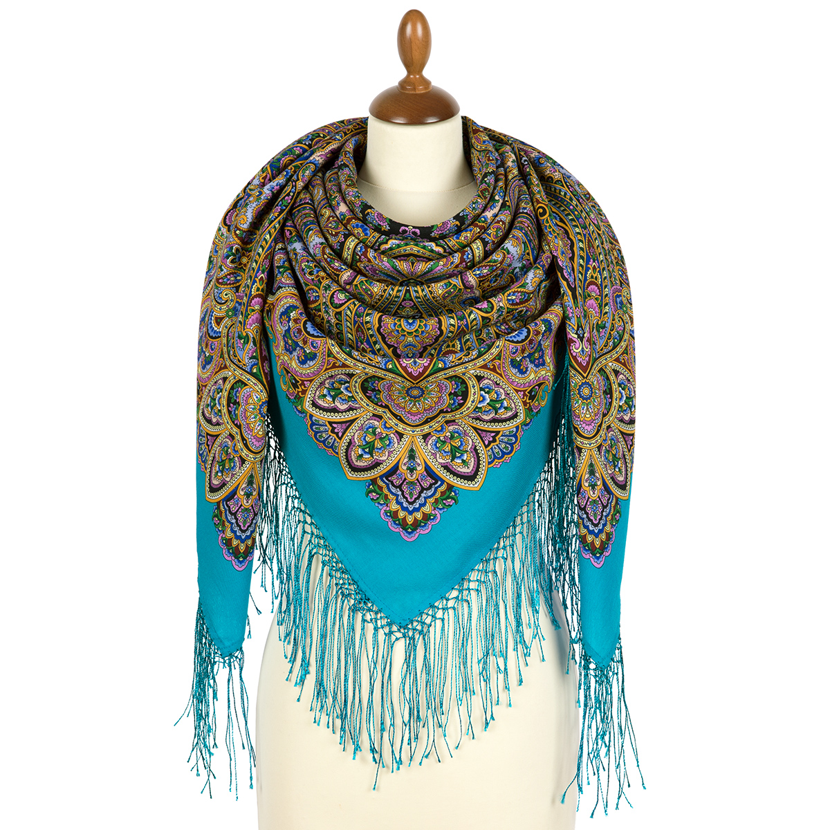 Платок шерстяной с шелковой бахромой, 125х125 см, выпуск 2019 г.