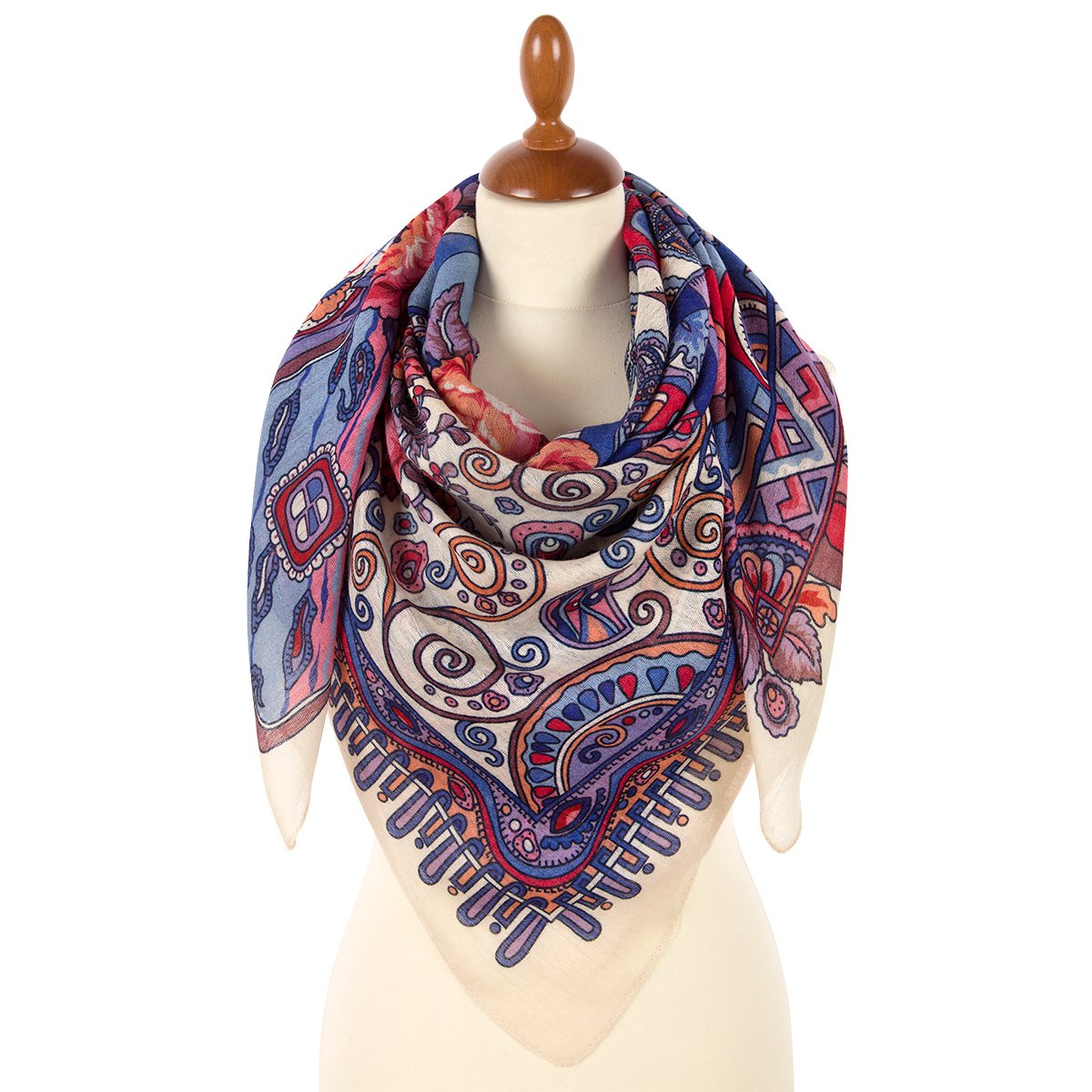 ВЕЛИКОЛЕПНЫЙ ВЕК 1867. Платок шелковый (крепдешин, бахрома), 130х130 см. Выпуск 2019 г.
