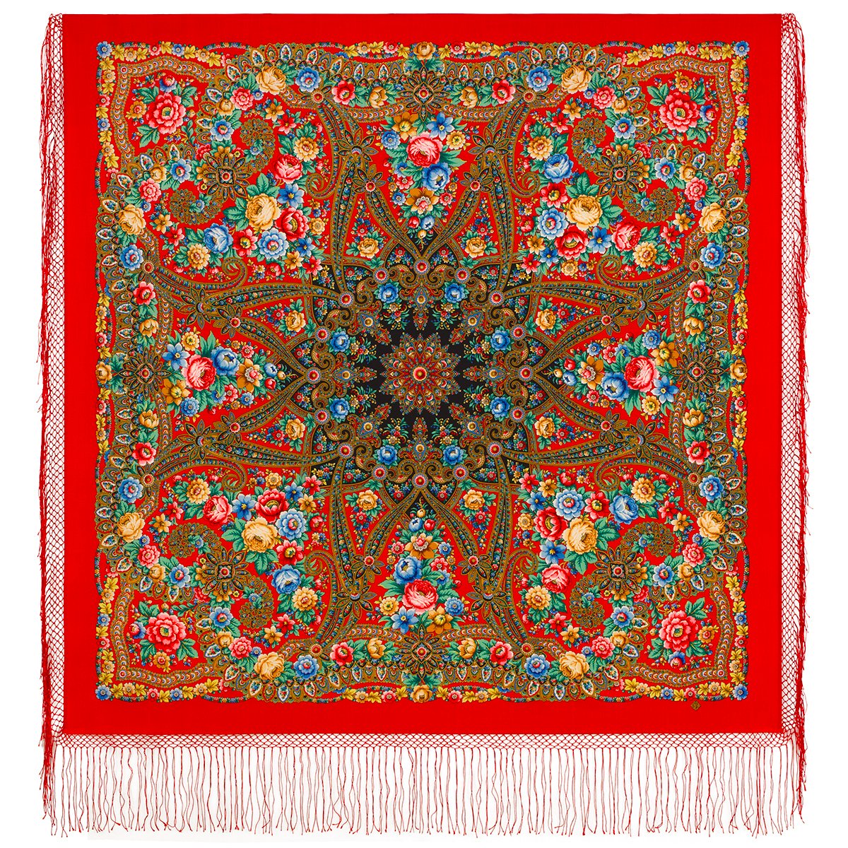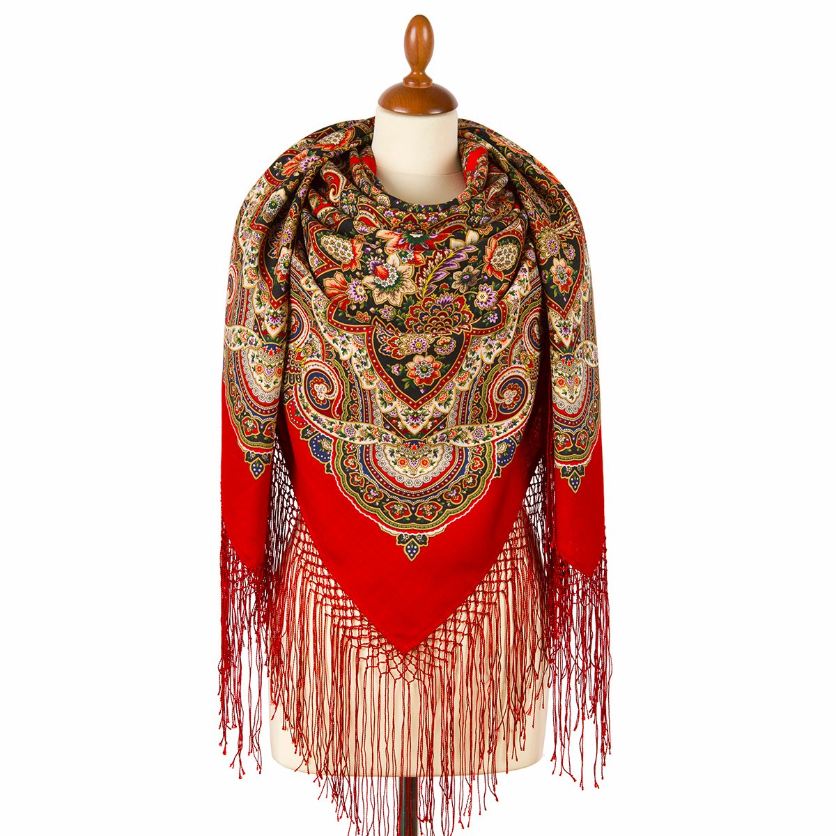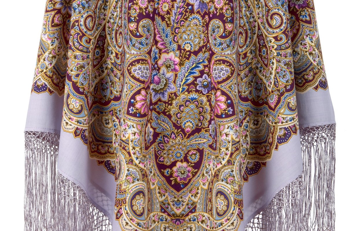 Платок шерстяной с шелковой бахромой, 146x146 см