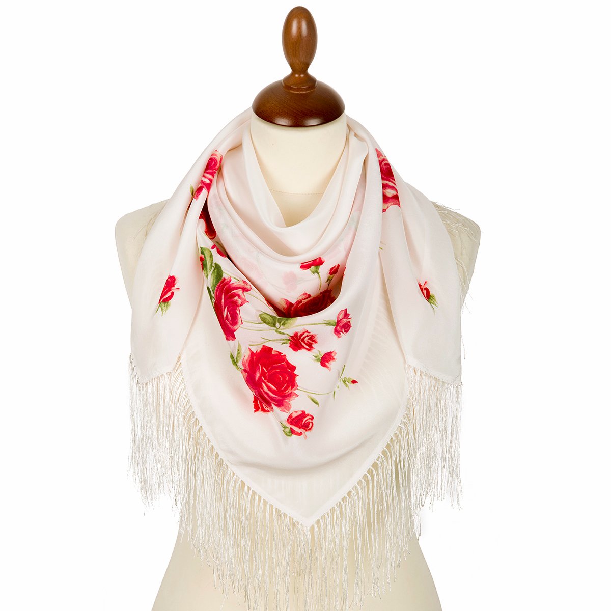 Платок шерстяной с шелковой бахромой, 89х89 см