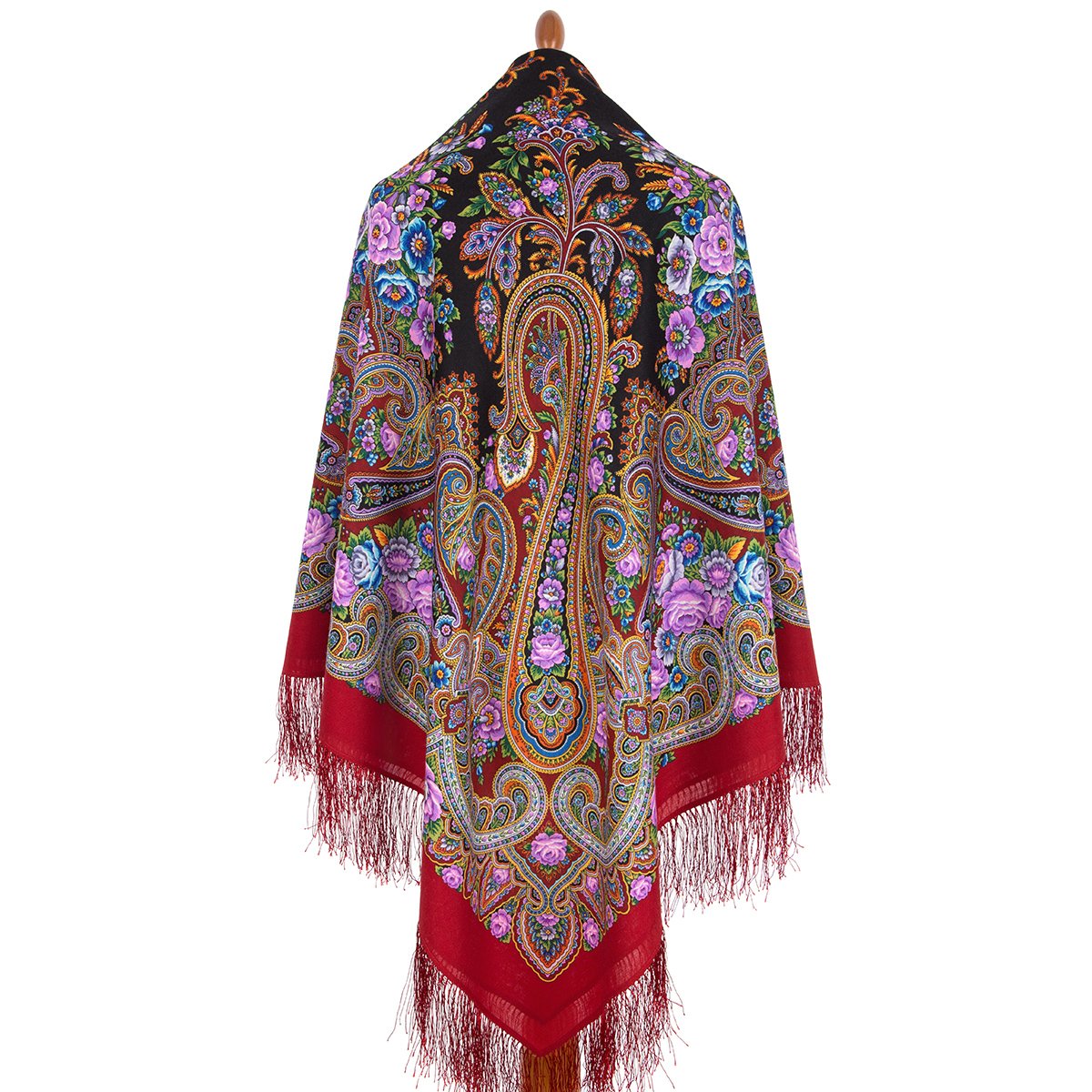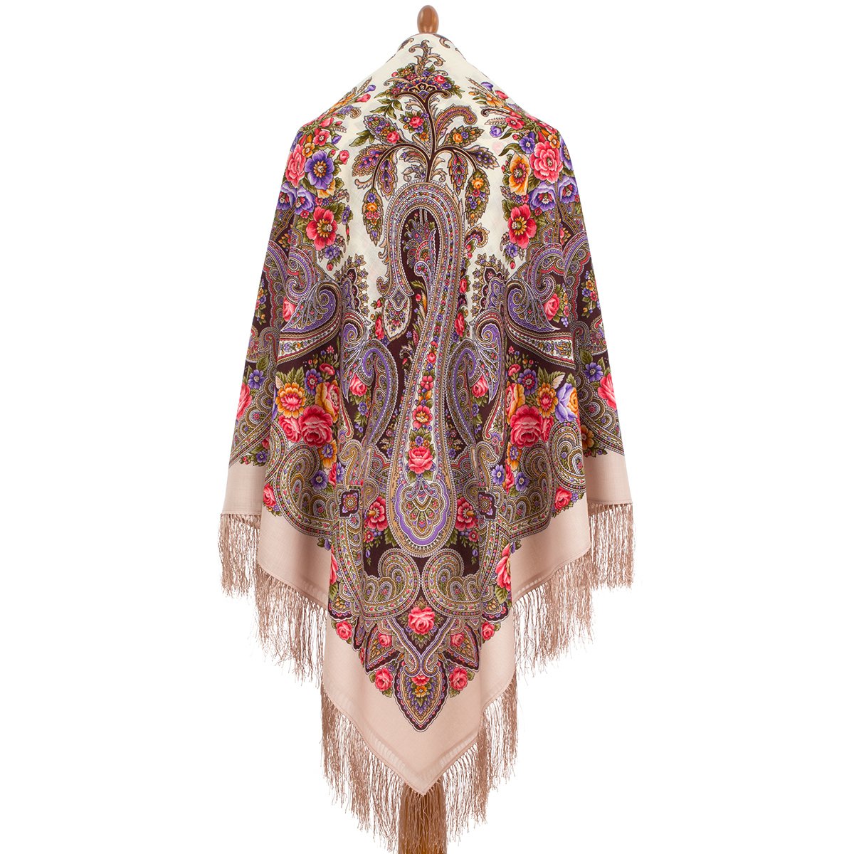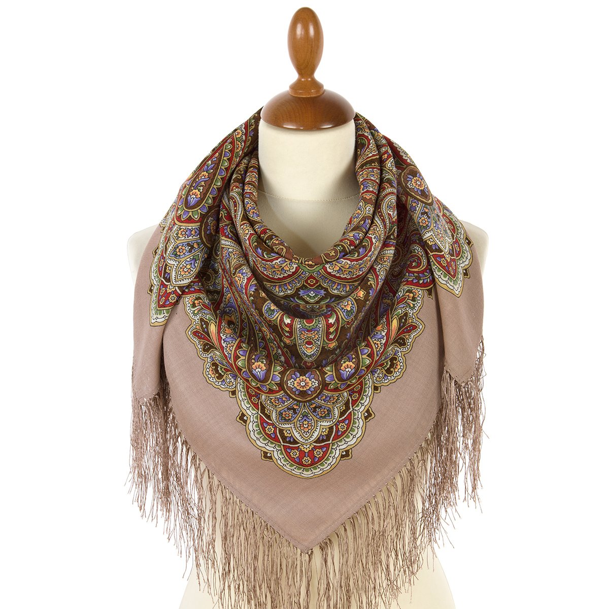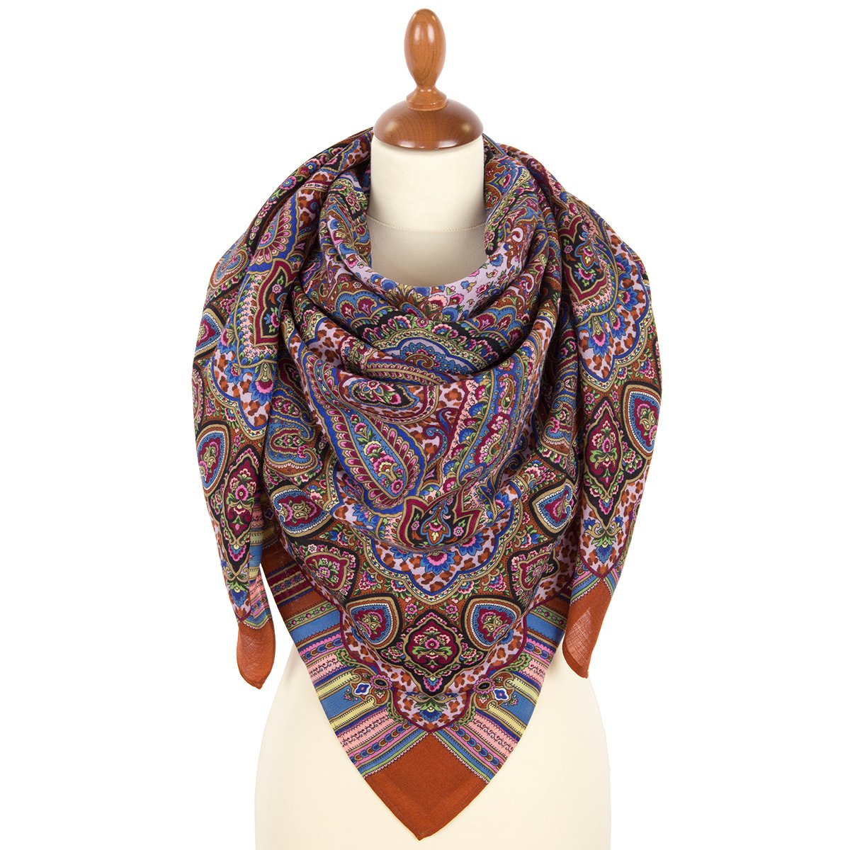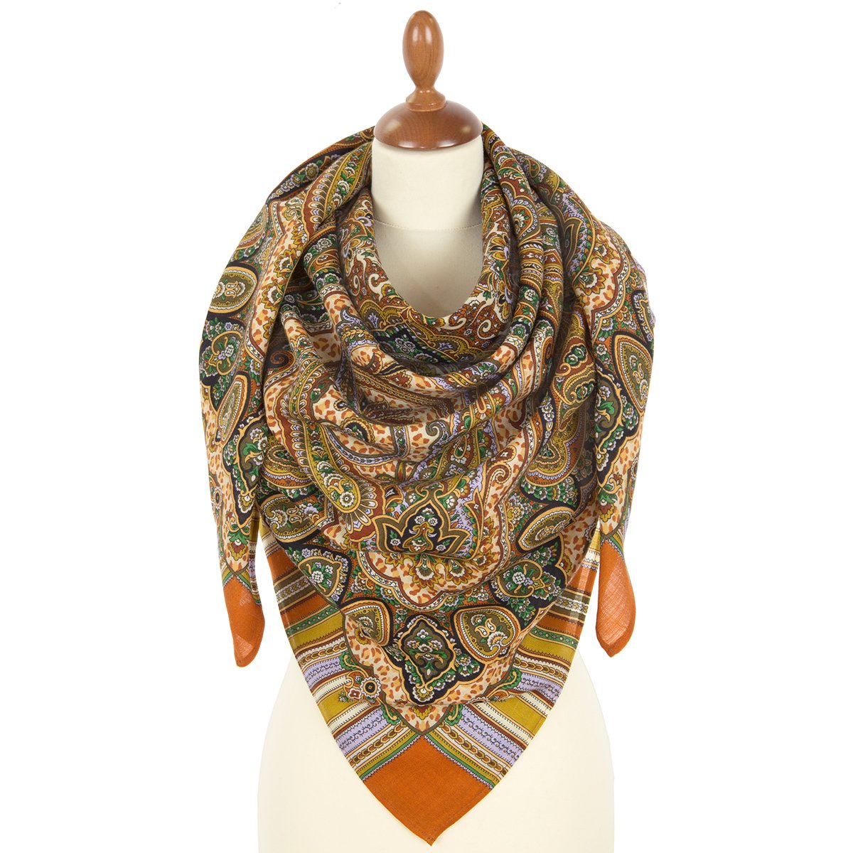 Платок шерстяной с шелковой бахромой, 146x146 см