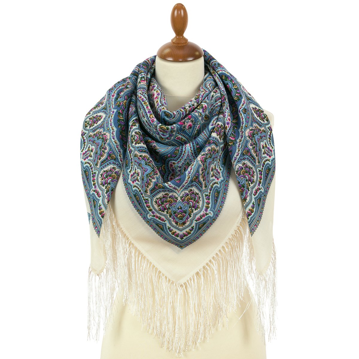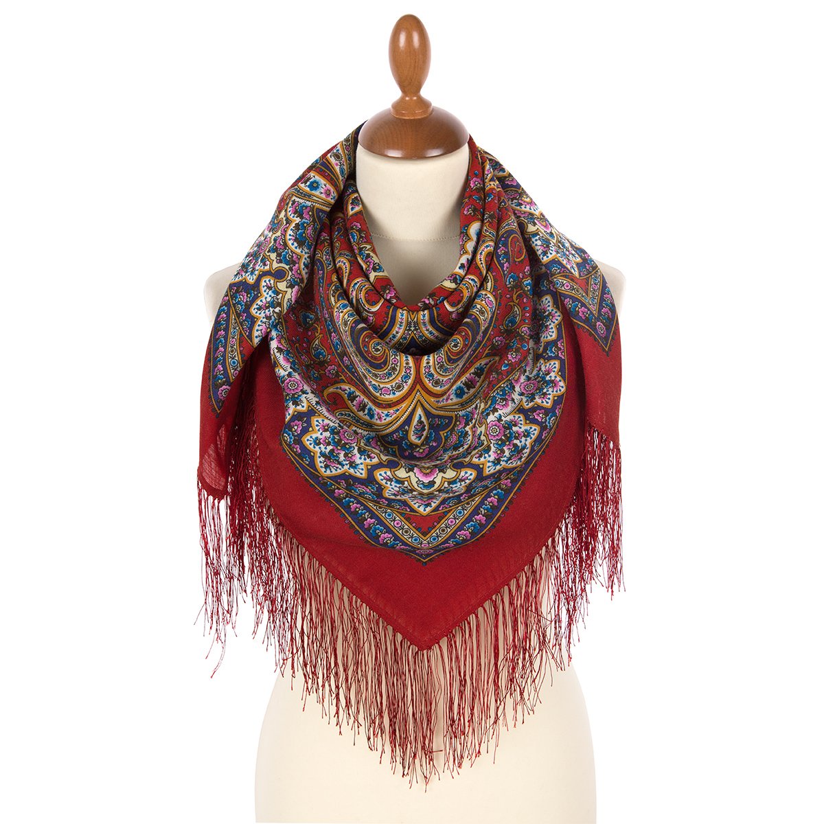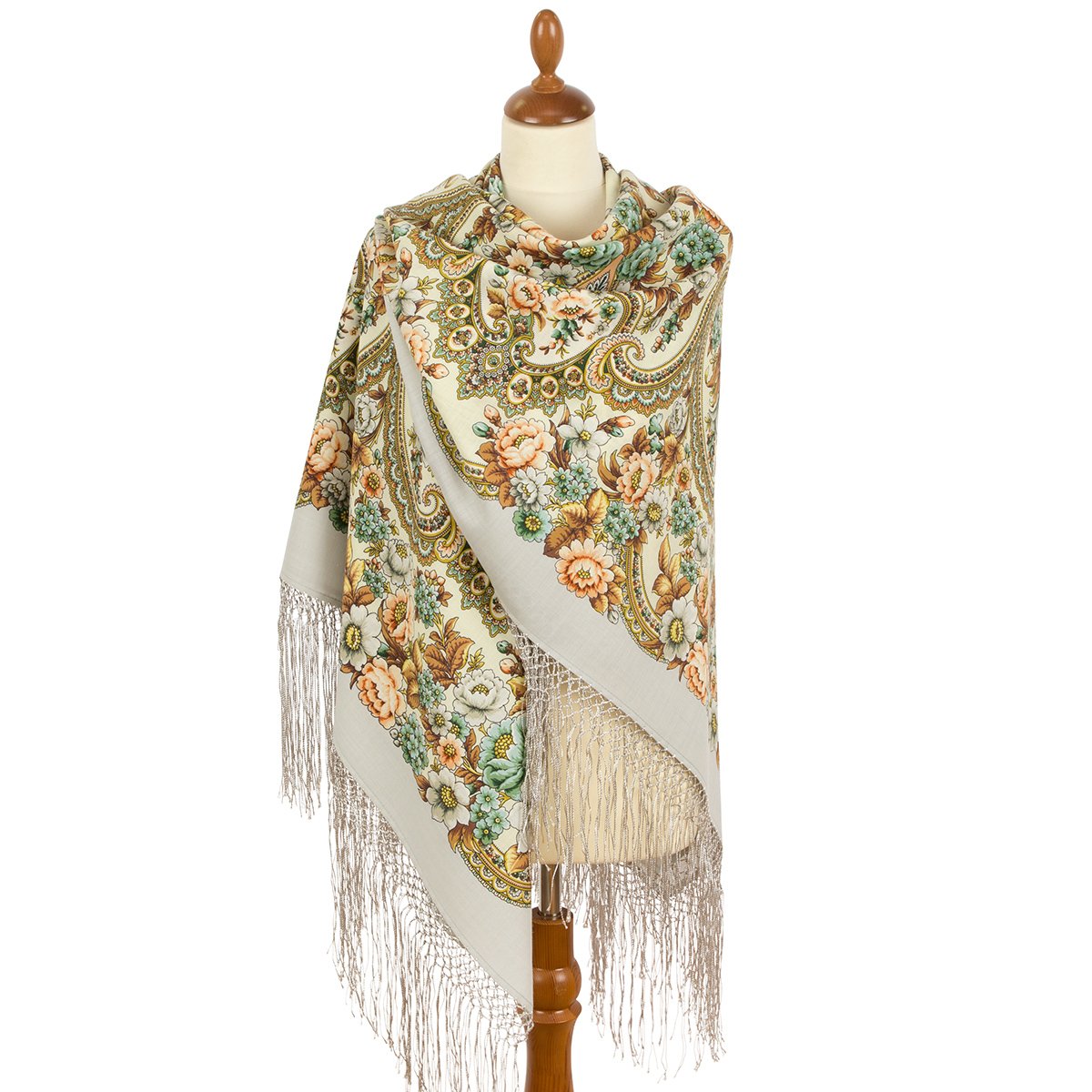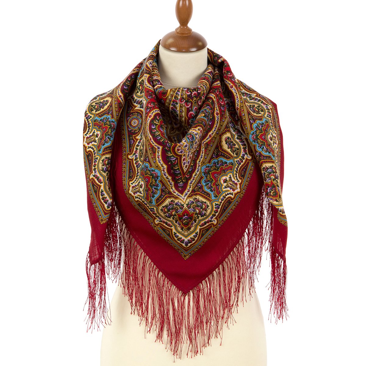 Платок шерстяной с шелковой бахромой, 89x89 см