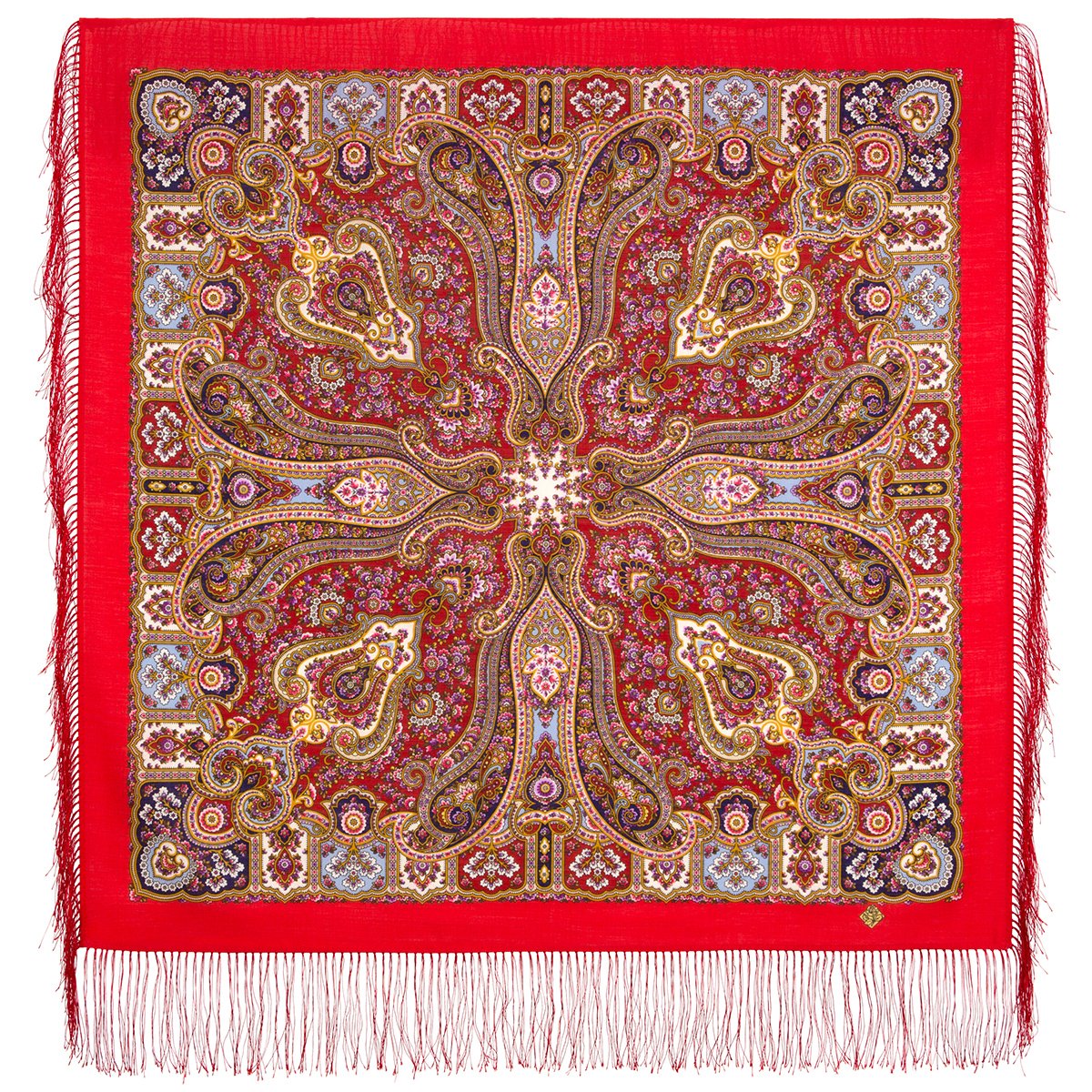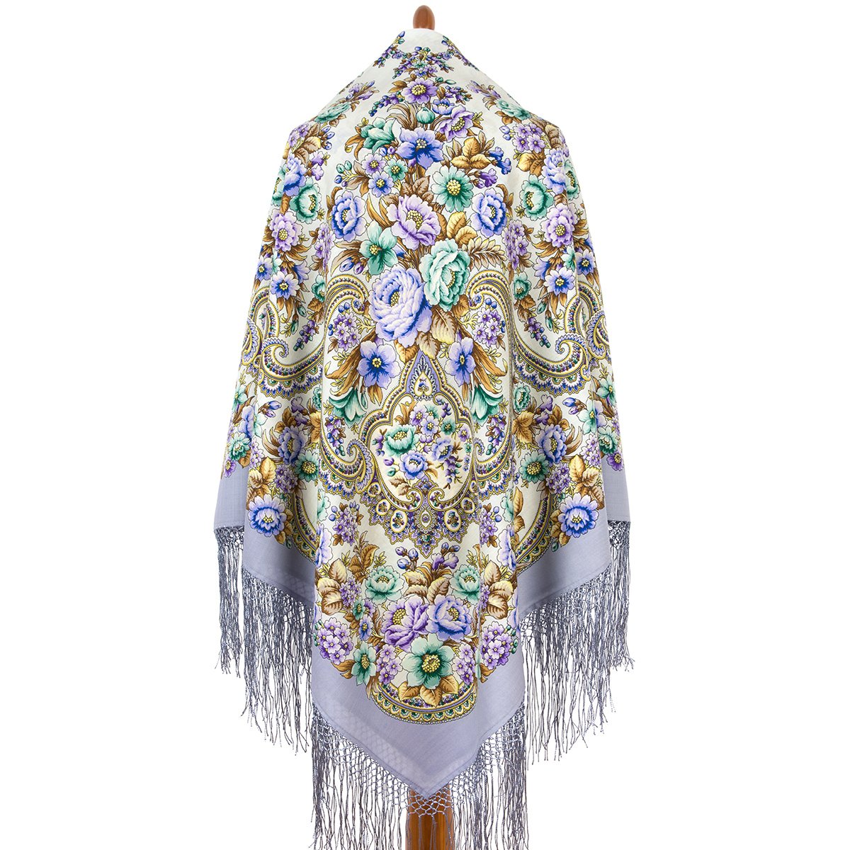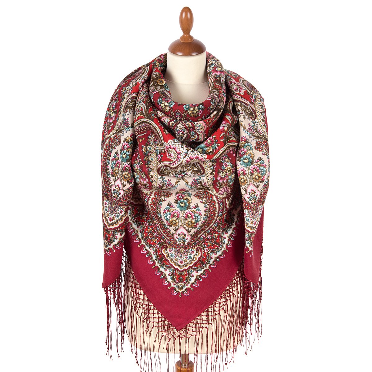 Платок шерстяной с шелковой бахромой, 89x89 см