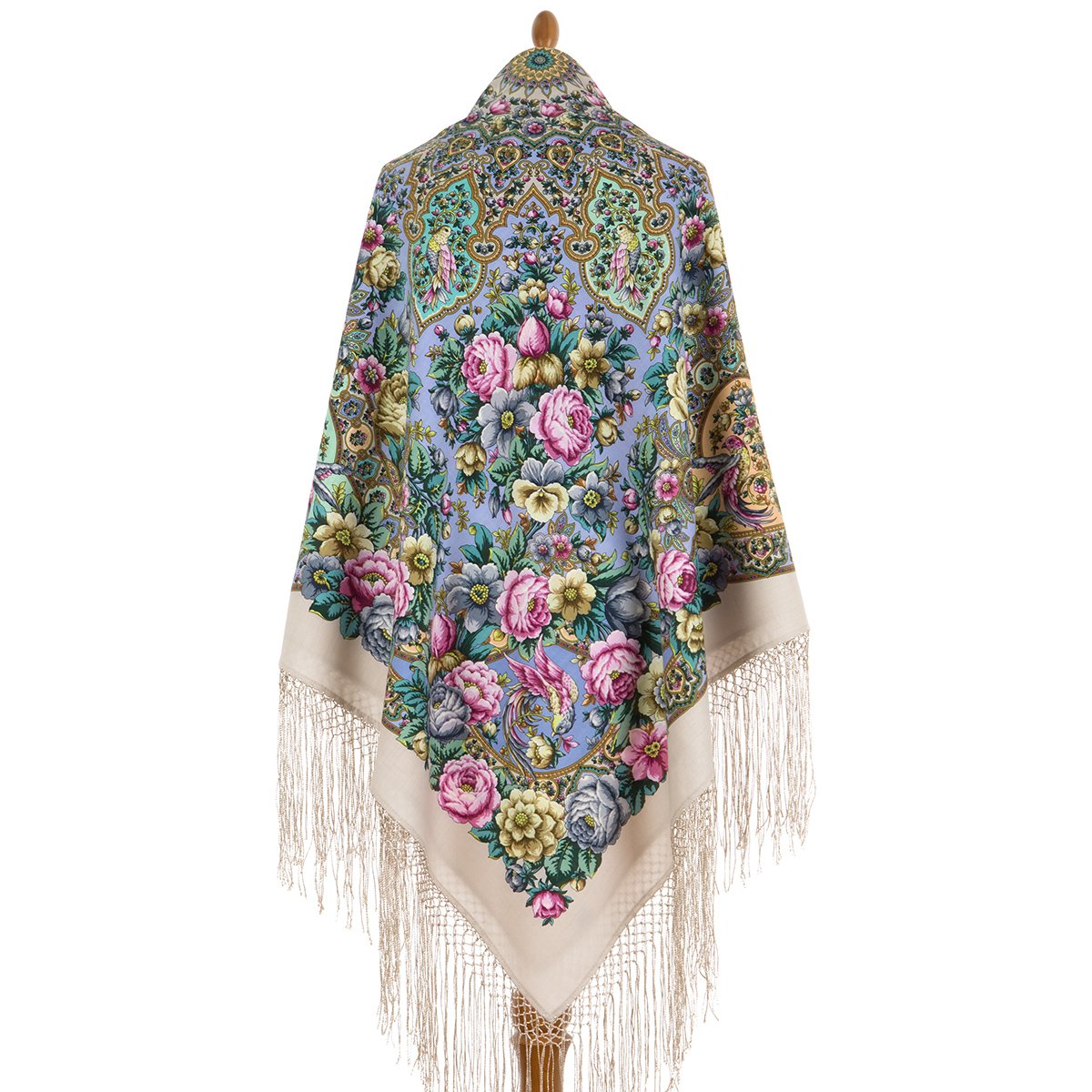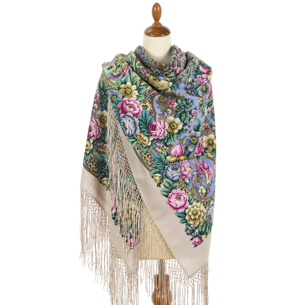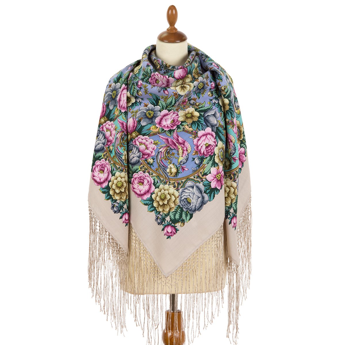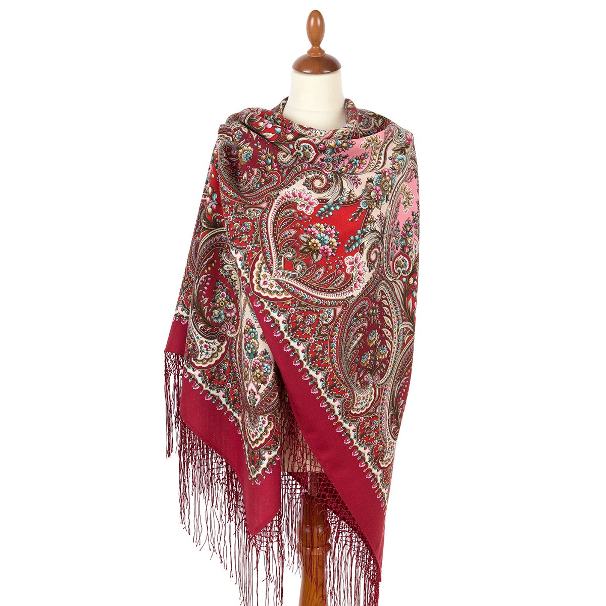 Платок шерстяной с шелковой бахромой, 89x89 см