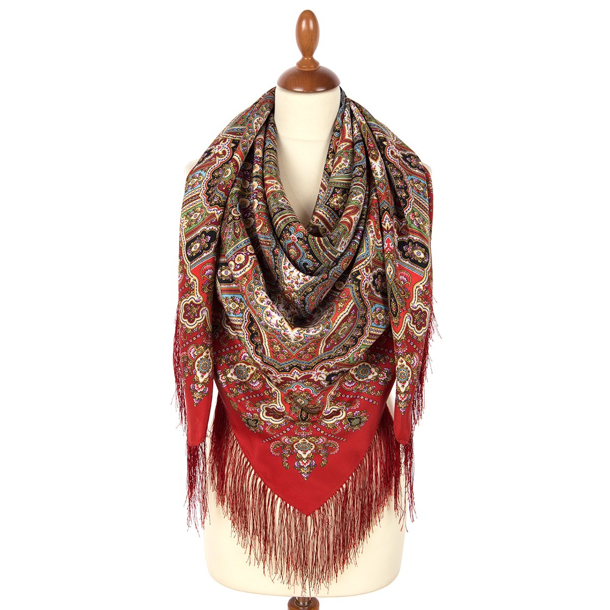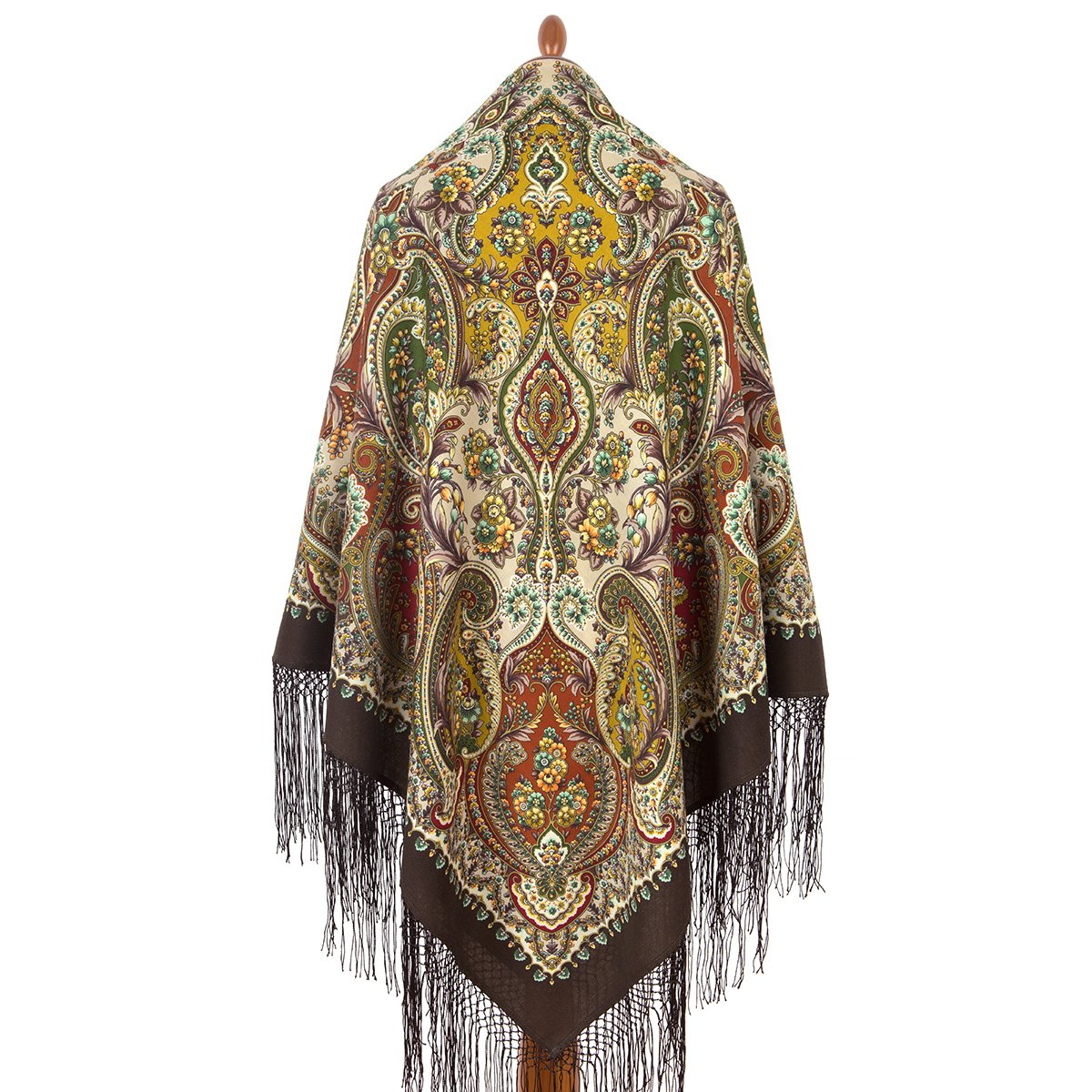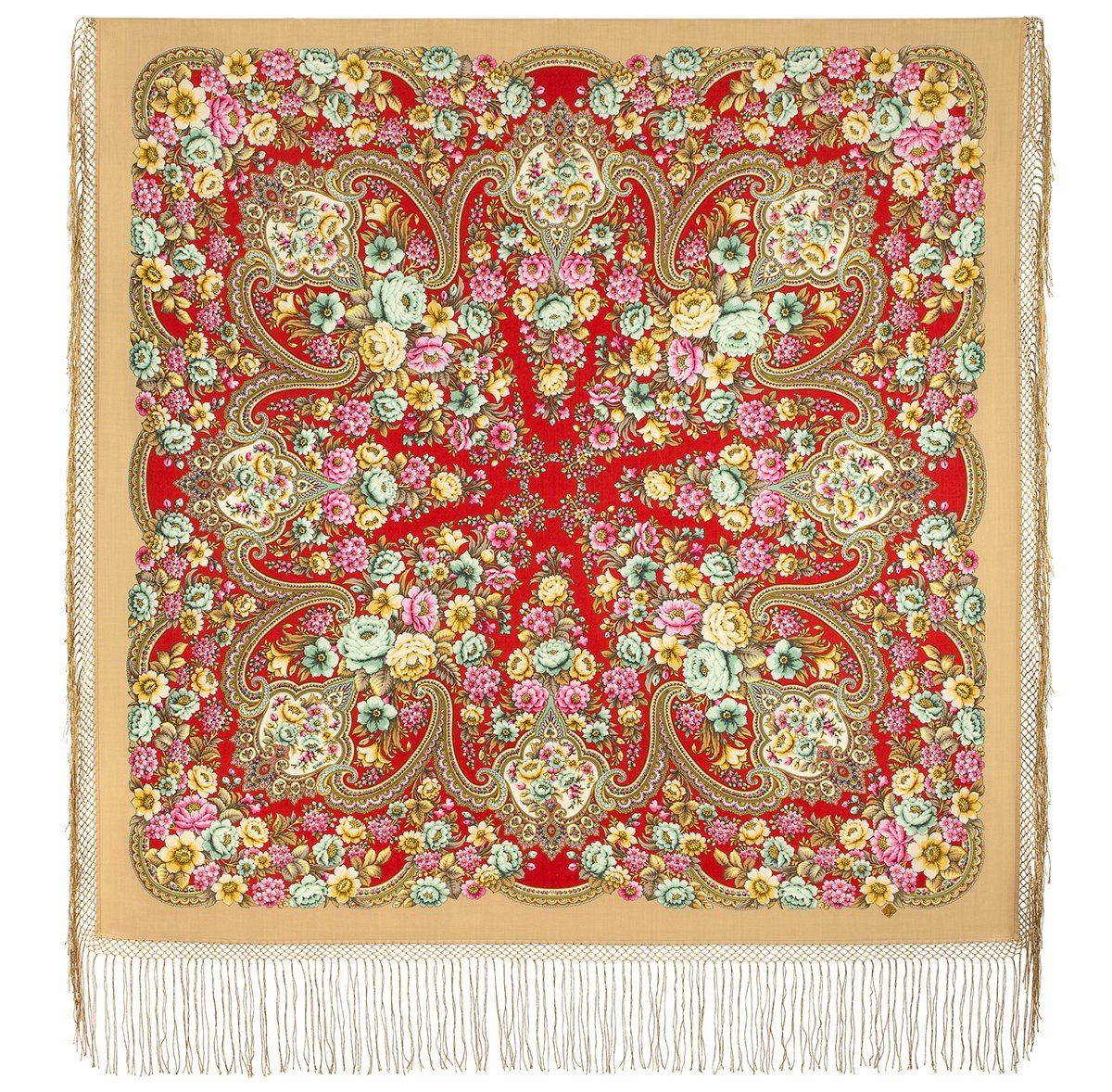 Многоцветный платок из уплотненной шерстяной ткани с шелковой бахромой, 148х148см