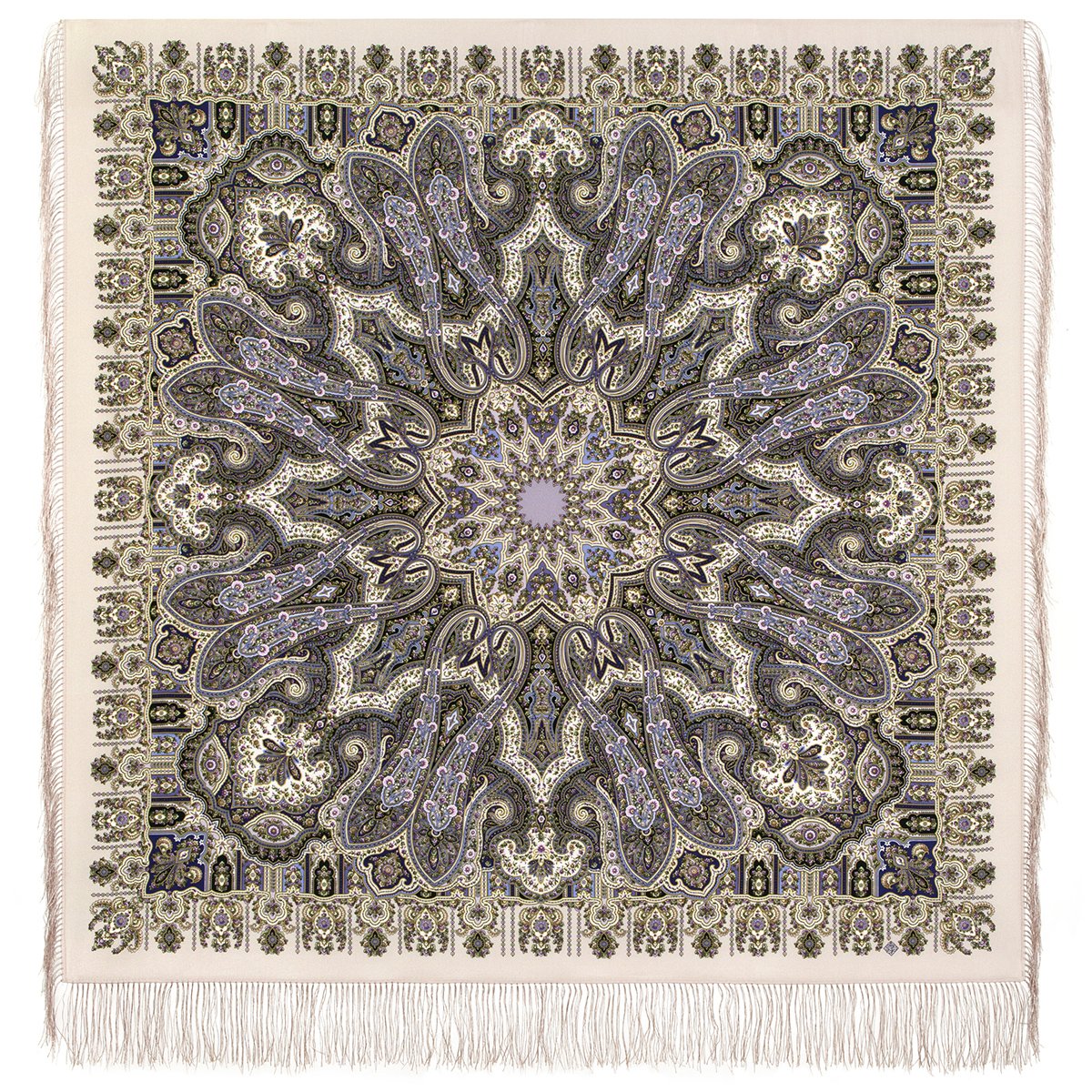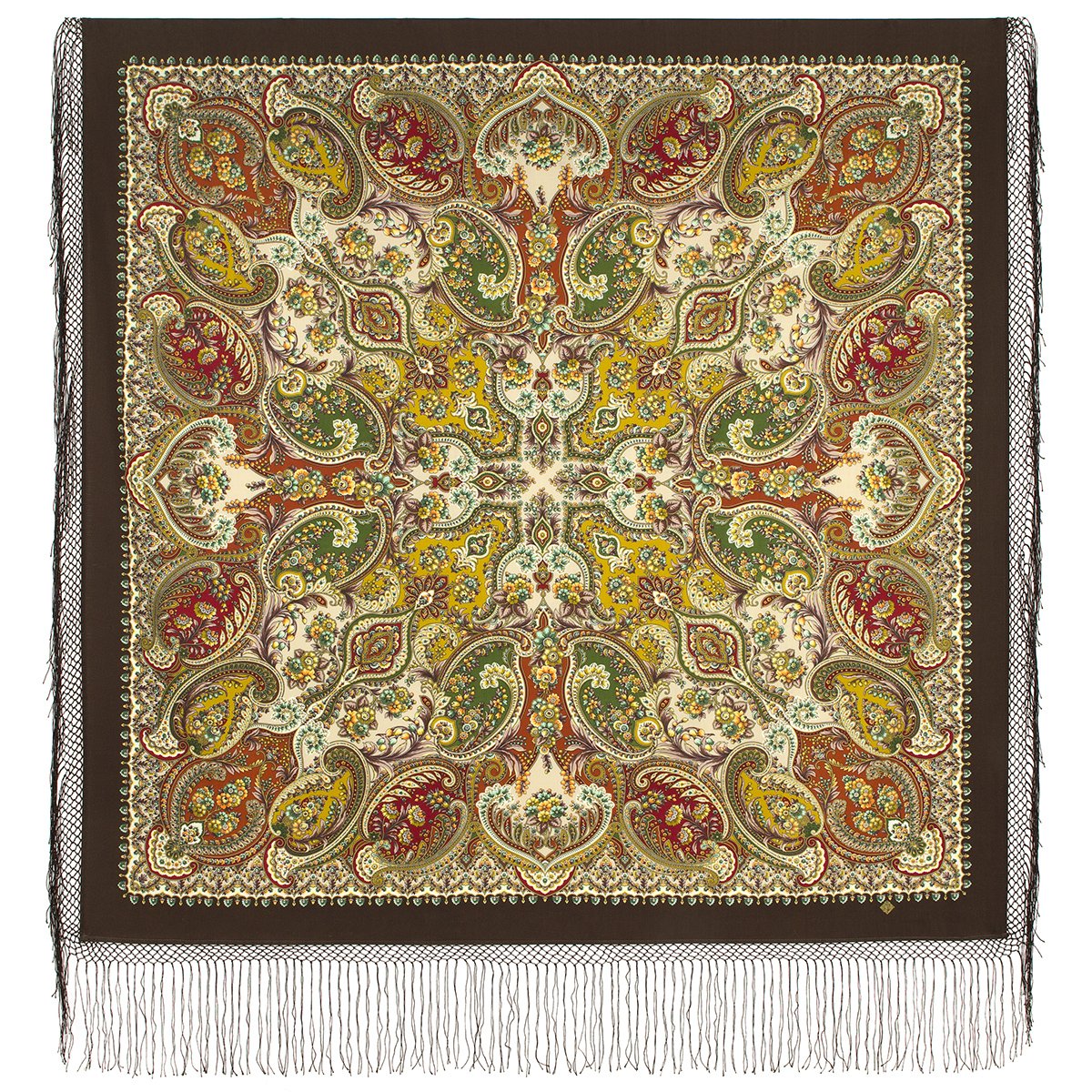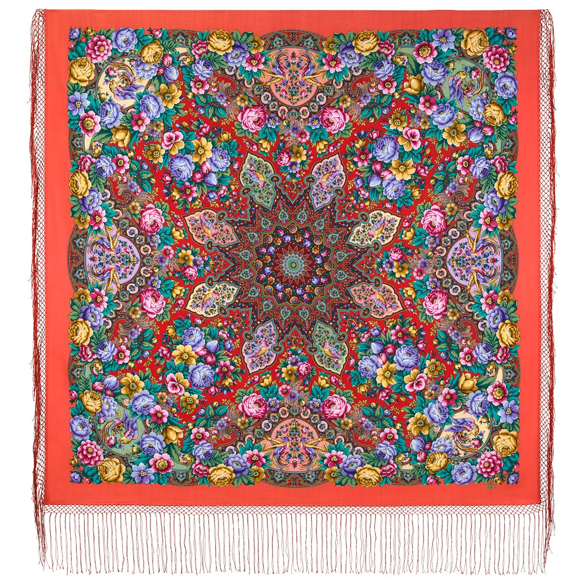 Платок шерстяной с шелковой бахромой, 110х110 см