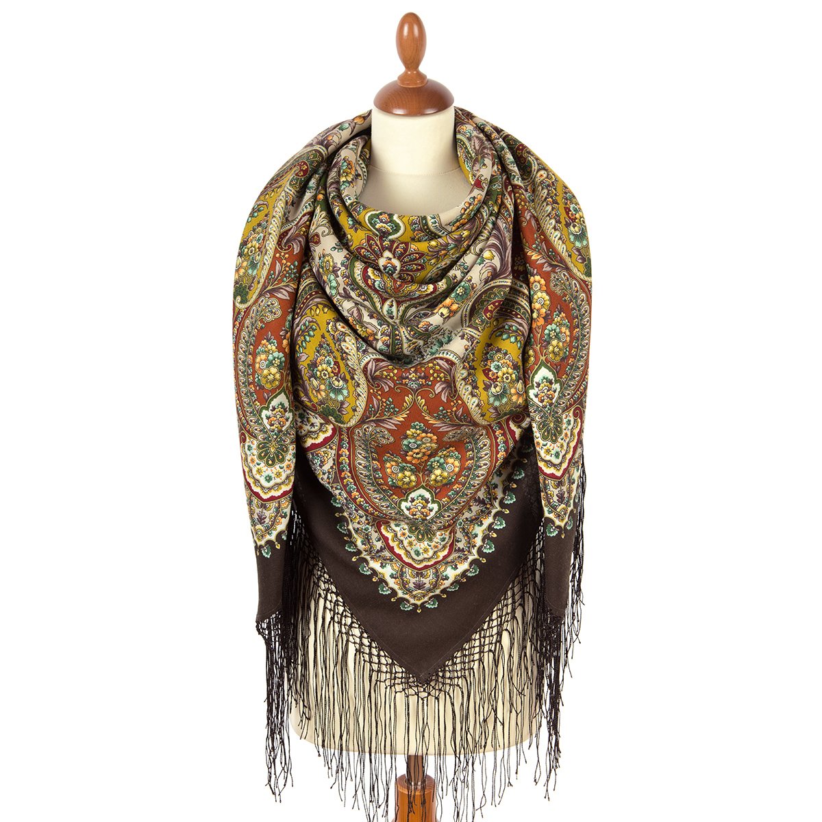 Платок из уплотненной шерстяной ткани с шелковой бахромой, 148х148 см