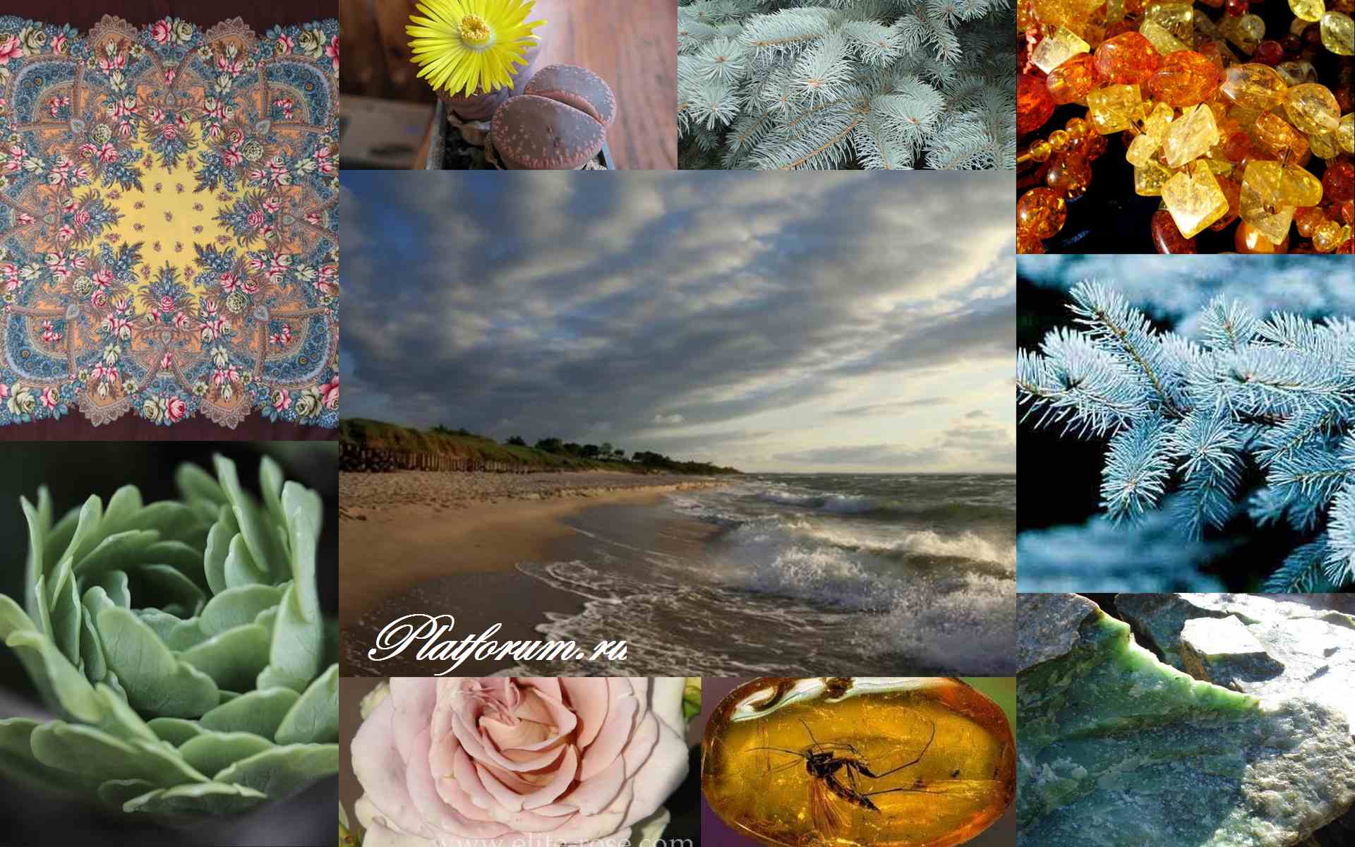 "Придуман узор был, когда она с мужем ехала в отпуск. У краёв шаль баклажанного цвета, в центре - ярко-жёлтого. Так художница показала рассвет, раннее утро жаркого летнего дня. Экзотичные зелёные и синие цветы и пальмовые ветви - буйство жизни вдалеке от дома, приключения и радости нового дня беззаботного дня лета. Есть в этом что-то современное и в тоже время совершенно русское".