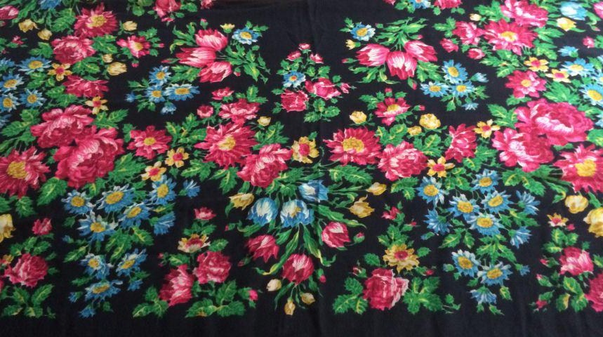 Шаль 150х150, концентрические ромашковые круги с тюльпанами в букетах