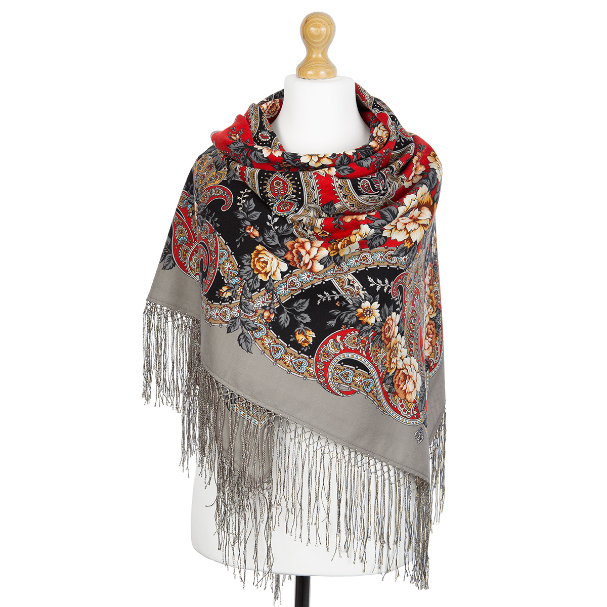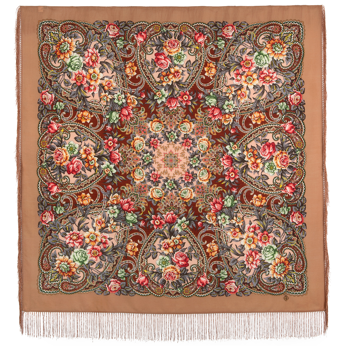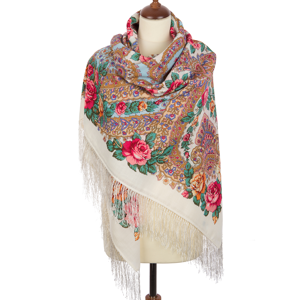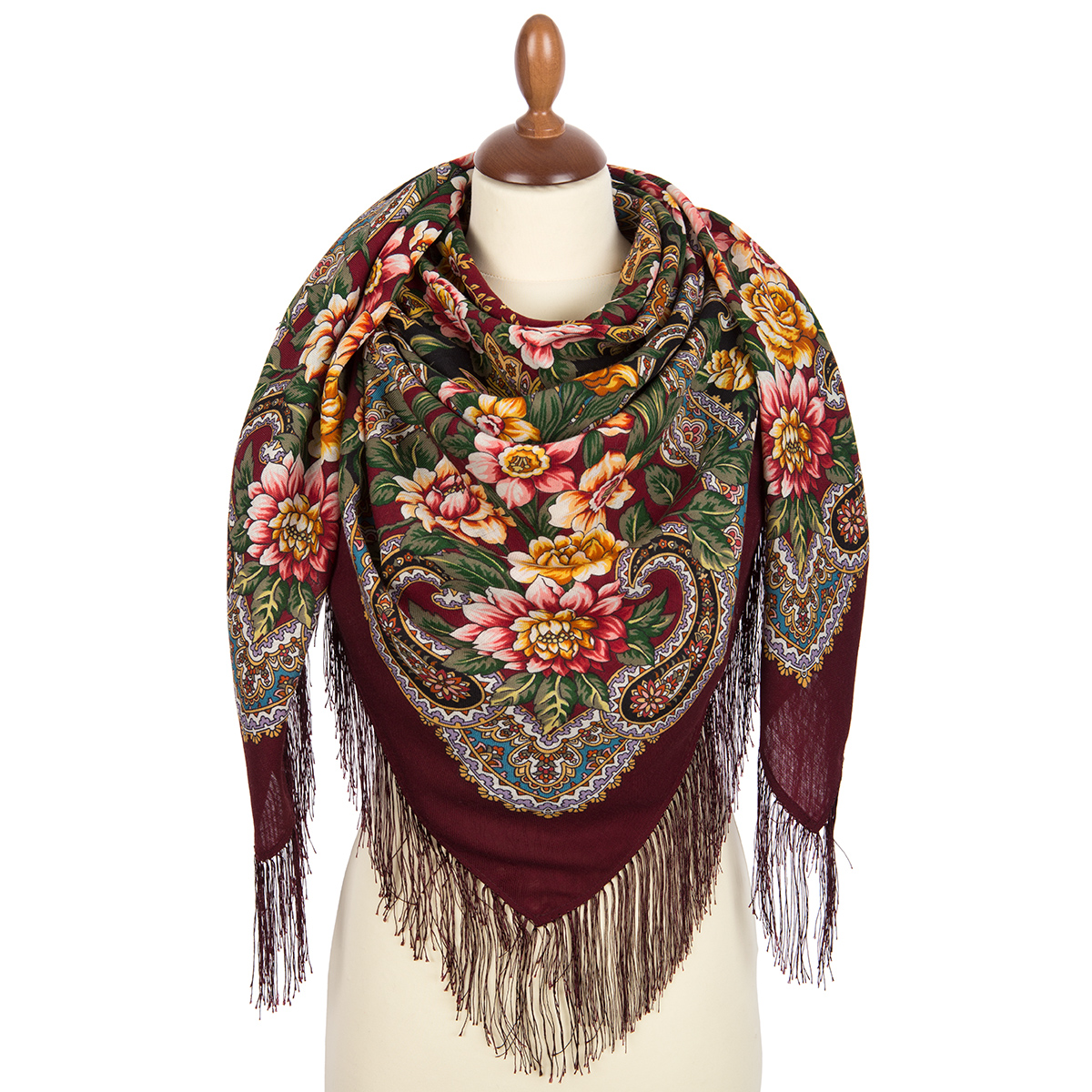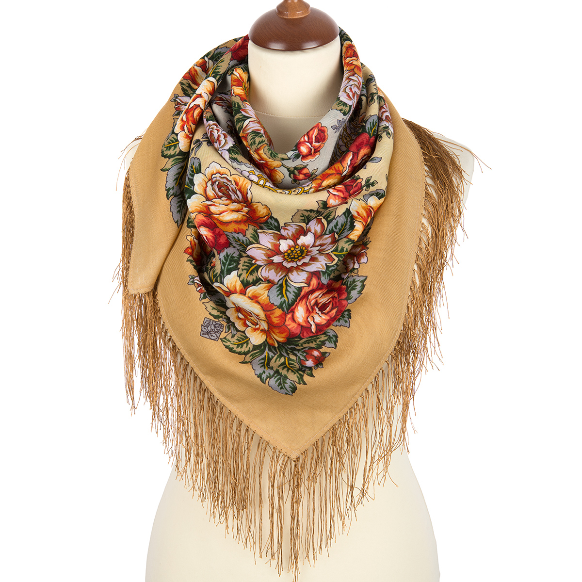 Платок шерстяной с шелковой бахромой, 125х125 см.