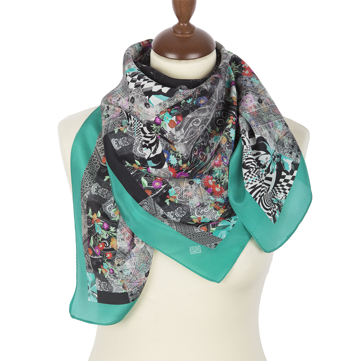Платок шелковый (крепдешин) "10098", вид 10, 89х89 см