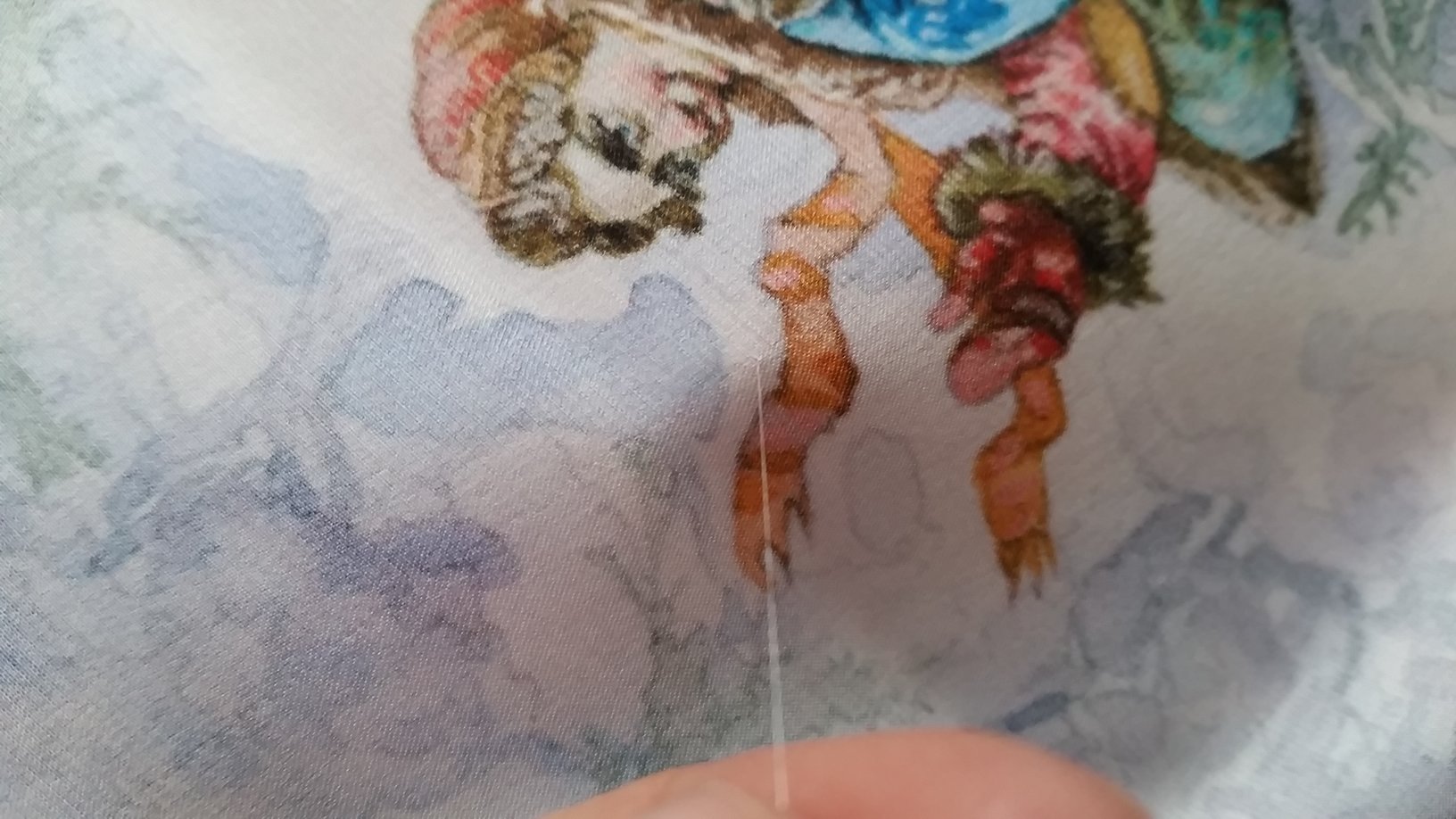 Ждала палантин с надеждой получить его с новой обработкой края (об этом было в обсуждении новинок), получила со старой в худшем ее варианте. Волнистый край с невнятным затянутым зигзагом. Ну и зацепка.