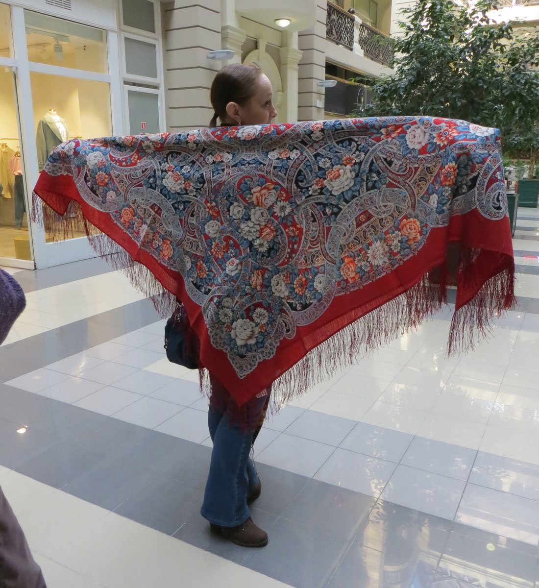 Очень хорошо Свете подошел. И одета она была прямо идеально доя 9-го колорита этой шали.