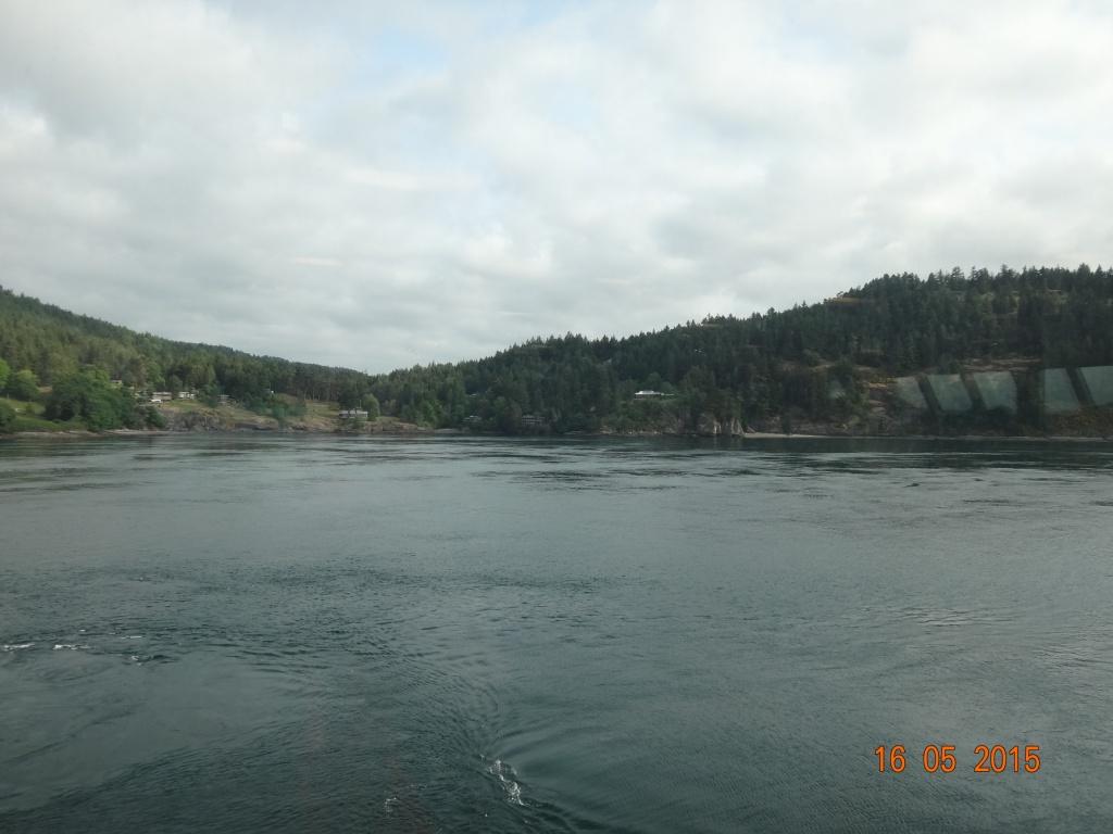 Суббота,начало длинного weekend'а,трудно представить,что будет огромное количество желающих совершить путешествие в обратную сторону,в Ванкувер. Позволив себе выспаться,отправились на паром.Обратный путь был таким же приятным: солнышко светило,ветер развевал наши платочки, жизнь была прекрасна... мы разомлели,поэтому не сразу сообразили в чём дело,когда после довольно невнятного сообщения публика рванула к противоположному борту. Когда,сообразив в чём дело мы перебежали на другую сторону,всё что мы увидели - были только смутные тени в глубине,киты уже уплыли, а мы упустили шанс полюбоваться морскими великанами в качестве бонуса к нашему путешествию.