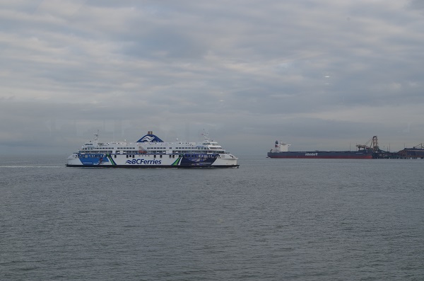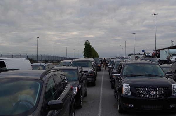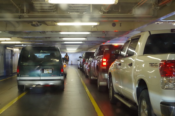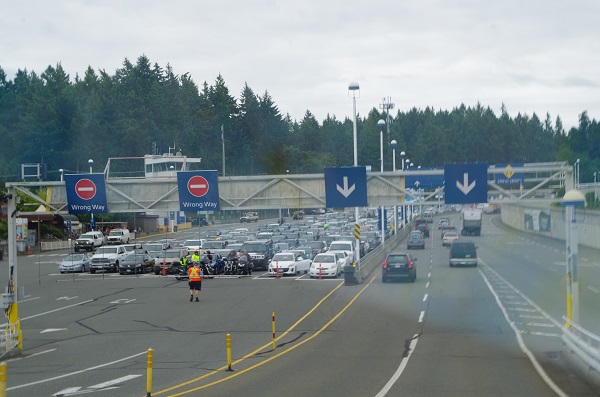 Выгружаясь с парома - увидели очередь машин ожидающих этот паром. Я думаю, что она была гораздо меньше чем в Ванкувере. Мы выехали с парома и помчались по хайвею в веренице машин. Остановиться не возможно....
