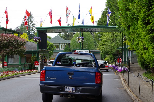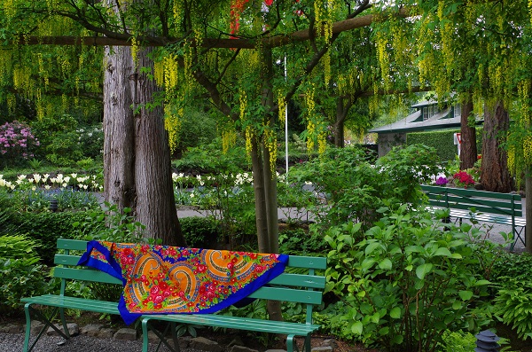 Доехали до ворот ботанического сада, проехали через турникет Итак - у нас целый день в ботаническом саду. Вчерашний променад по Ванкуверу и короткий сон в машине - внесли коррективы во внешний вид. Красивую обувь, типа туфель или босоножек на ноги не натянуть - только удобная, практичная спортивная обувь- ноги надо беречь! Жаль было сочетать Цветущий сад с кроссовками, но здоровье дороже красоты. Сфотографировав Русь на очередной скамейке - пошли разглядывать красоты природы и мастерство садовников