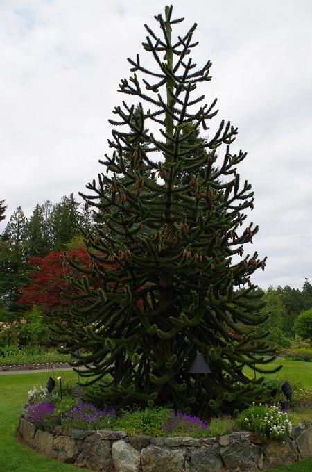 поразило дерево Monkey puzzle tree (Araucaria araucana)- из далека - елка елкой, а подойдешь - толи кактус то ли суккулент - короче настоящий голосемянной динозавр