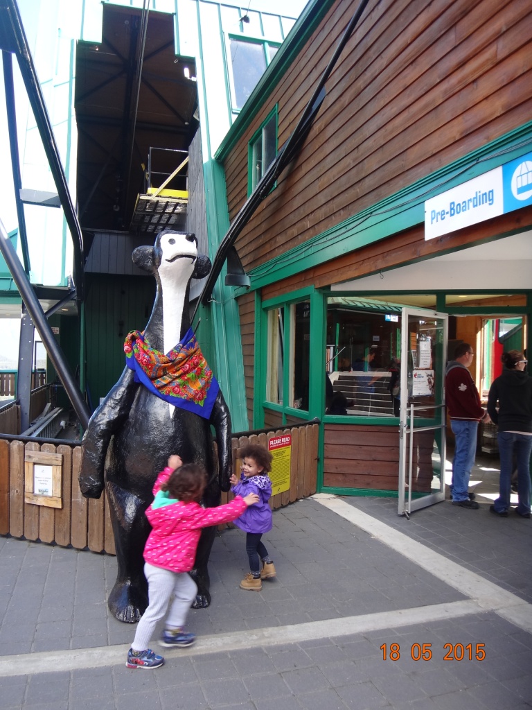 На горе,запарковав машинку на единственном найденном свободном месте (оказавшемся прямо под фуникулёром,напротив таблички *машины не ставить,падают камни*), в ожидании фуникулёра занялась оплаточиванием ( или обРУСИванием ) местных медведей, к великому удовольствию малышни.Поднявшись наверх, покинула кабину под напутственные слова оператора о том, что выходить за ограждение официально нельзя, но если очень хочется - то можно