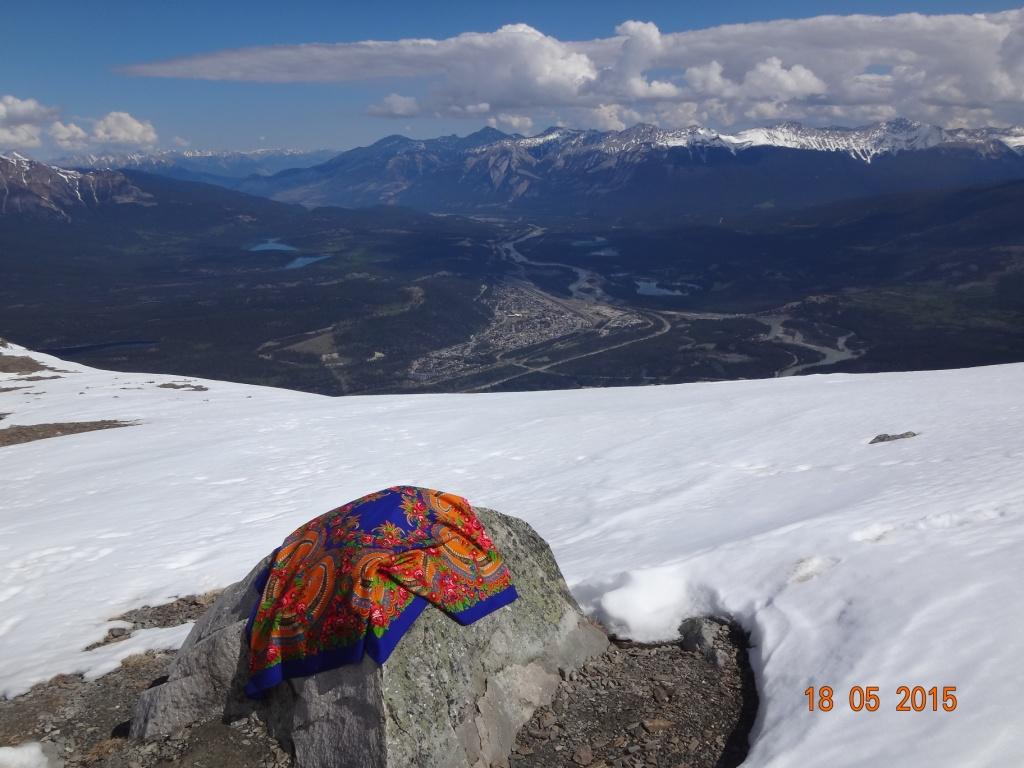 Накануне, покупая билет на фуникулёр на горе Whistler (не олимпийской,на удивление,в здешних краях водятся несколько тёзок олимпийской знаменитости), мы не подумали о разнице во времени между Британской Колумбией и Альбертой.Поэтому,учитывая то,что дорога туда занимает около полутора часов,билет взяла на 11 часов,чтобы быстренько забравшись на вершину для фотосессии с Руськой (буквально, одна нога здесь,другая - там), затем заехать на ледник Колумбия ( тот самый,самый древний в Америке и единственный на Земле, питающий три океана) и дальше, через умопомрачительные,красивейшие места, по Айсфилд шоссе до Калгари, в гости к Алле-kowikkot.Теперь же получалось,что выезжать надо с утра пораньше.А наутро была намечена ещё фотосессия для потрясающих Ладиных работ