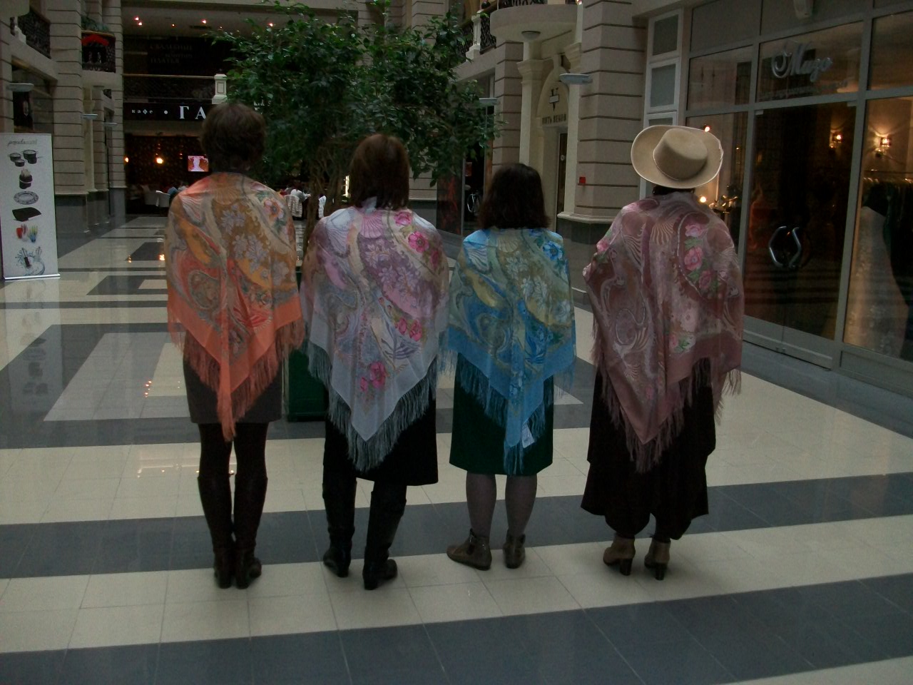Яна, вам очень здорово в желтом Вихре танца и в неизвестном для меня платке на общем фото и на фоне Royal Palace. Элла в черно-зеленых Рябиновых бусах понравилась. Очень хоцца еще фото