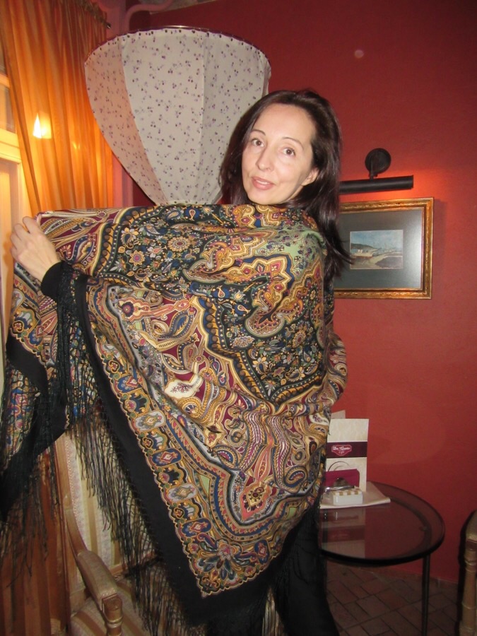 К слову . У Ирины, нашей соратницы по шалям, дочь довольно скептически относилась к ее скажем так безумному собирательству, после показа Ирина показала ей фотографии , ... и лед тронулся :) На следующий день дочка перед выходом на улицу подбирала к наряду шаль! О как!