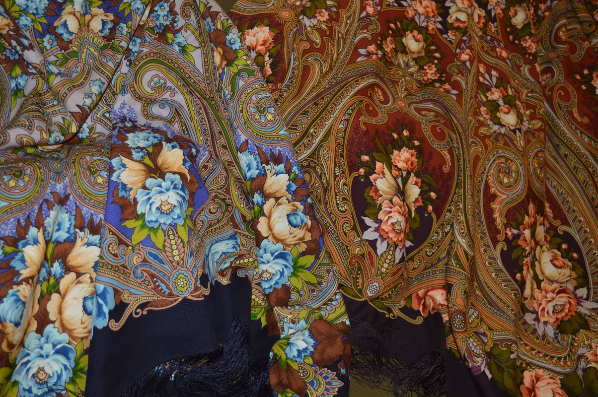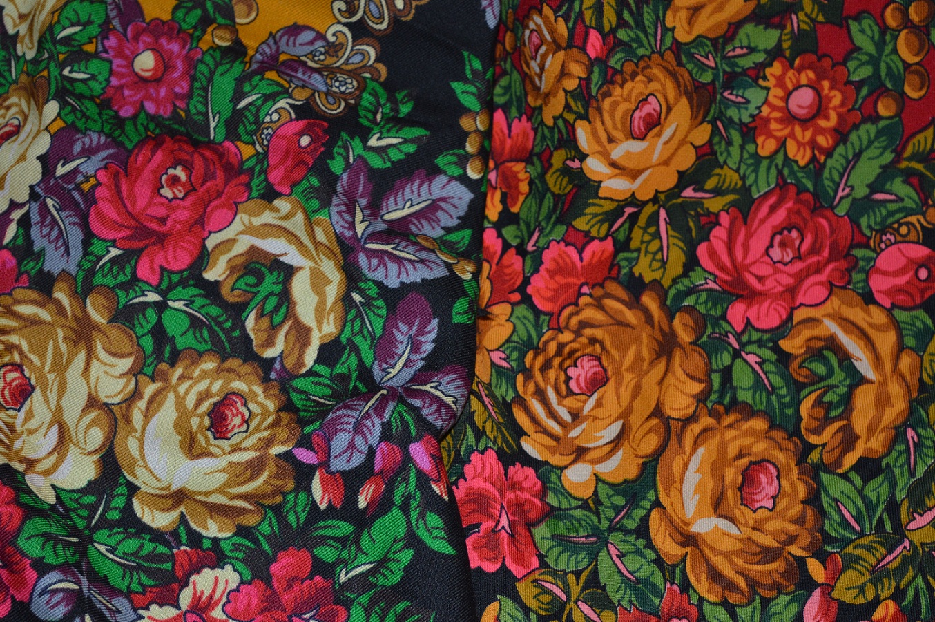 Еще один старинный рисунок Розы и Пионы, восстановлен Виктором Зубрицким. Справа - мое последнее приобретение. Слева - ручная набойка из Марининой коллекции.