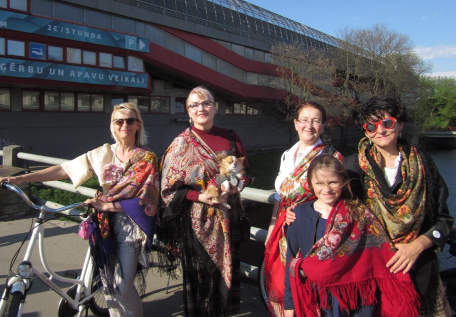 Велосипеды были в порядке, костюмы тоже, и как же без наших шалей и платков. Погода нас сегодня баловала - солнечно, тепло, лёгкий ветерок, который не мешает езде на велосипеде.