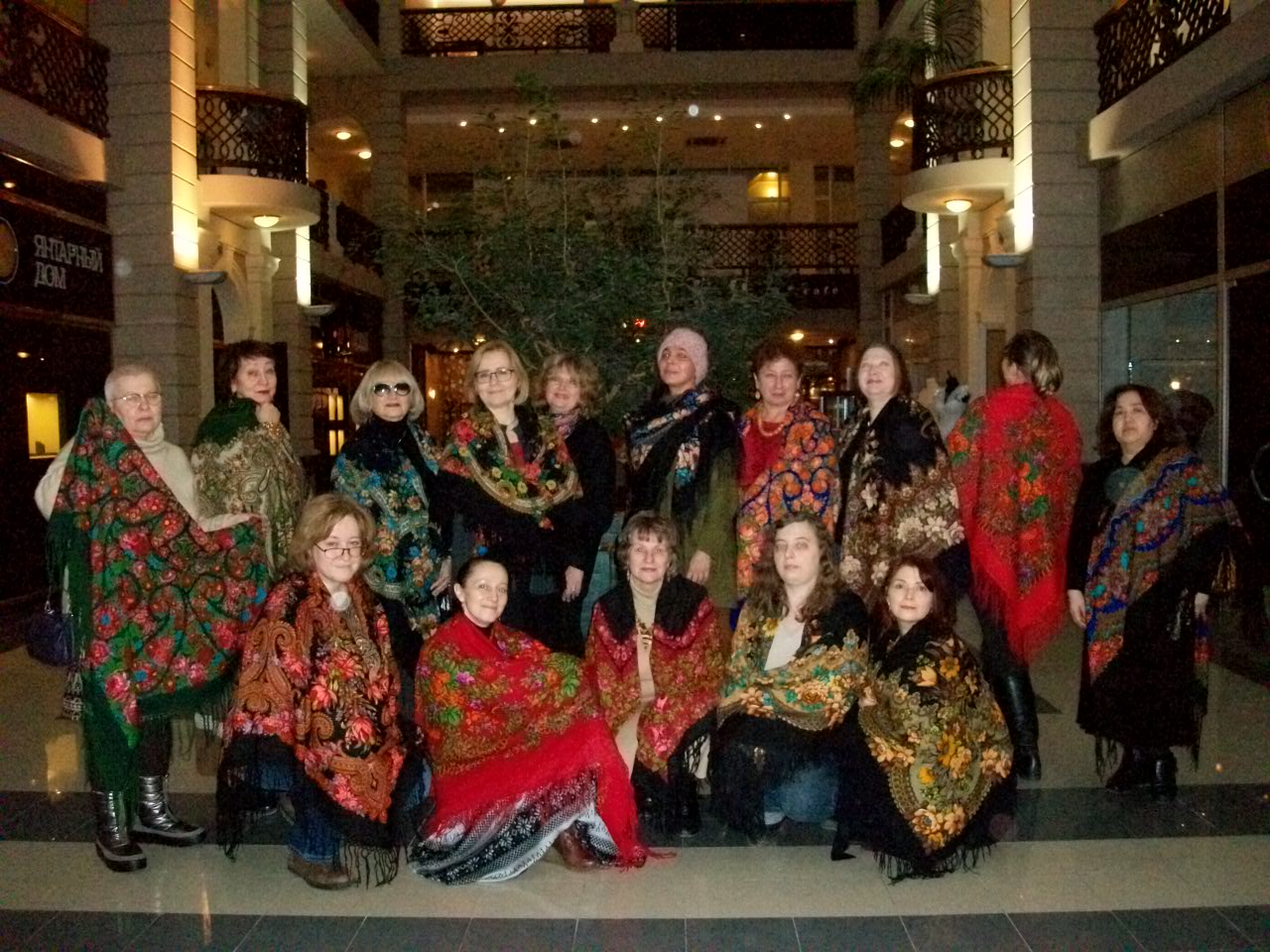 Сегодня было много народу, что очень приятно. Шалей принесли столько, что замучились мерить. У меня чуть-чуть фото, будет у Леоноры и Selenki, а основное у Tigrushkina ^%