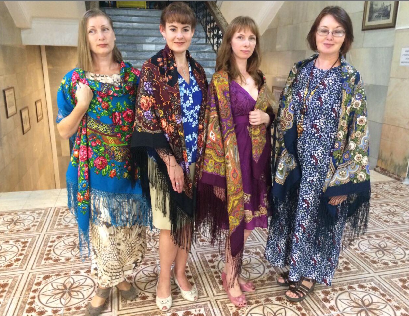 Дорогие воронежские соратницы! Чудесная встреча, редчайшие шали, элегантные примерки, красивые лица. Мне тоже очень запала в душу маринина Цветочная сказка в необычайном колорите. Любимейшая Лирика, изумительный Посадский...Оля в белом платье и Первом свидании...