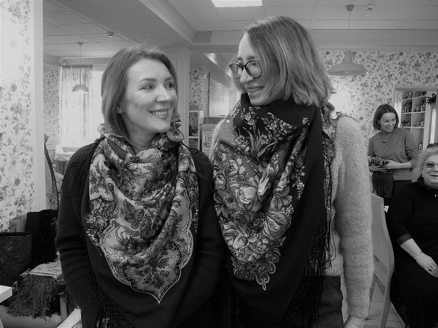 Труженицы! Это же на сколько часов дел! Судя по многочисленным соблазнительным уголкам платков и шалей, выглядывающим отовсюду. А покушать успели?