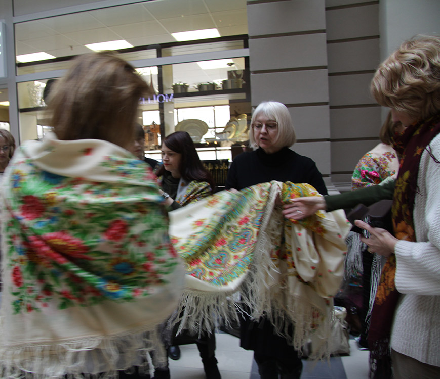 Могу толъко смотретъ на шалъ, любоватса и повторятъ за дамой - "вот такую шаль я хочу"!