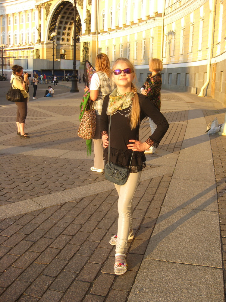 Мы сразу же вышли на Дворцовую и в ещё более приподнятом настроении принялись фотографироваться в лучах заходящего солнца...