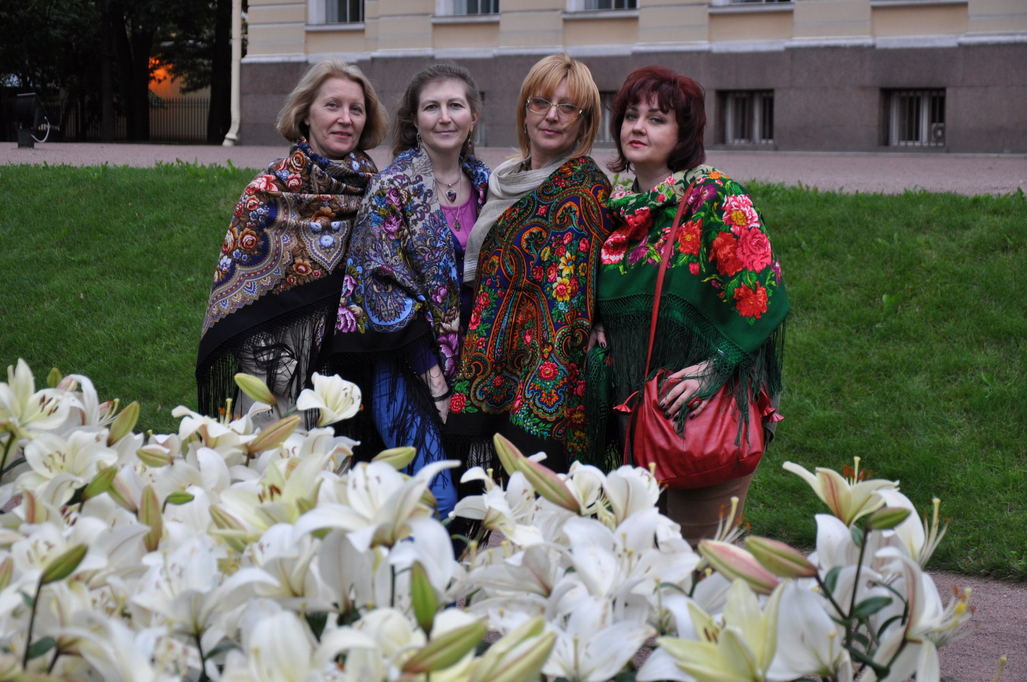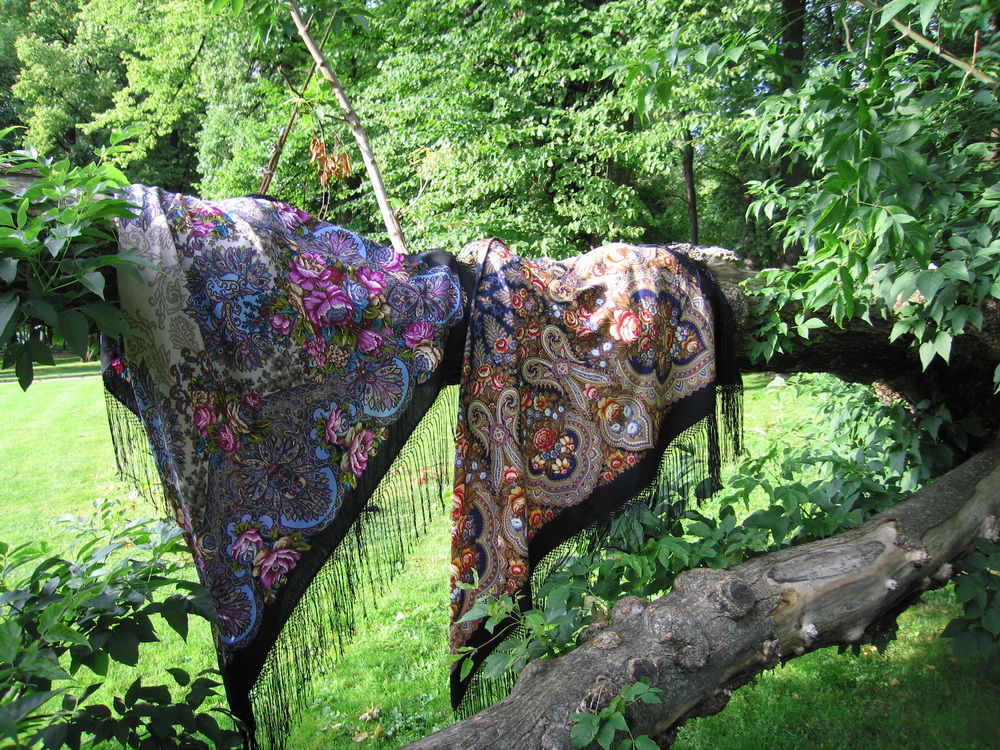 Сначала - фотосессия для любимых шалей. Участвовали: Старый замок 14 Е. Жуковой, Лето в Павлове 14 Т. Сухаревской, Цветущий сад 30 Л. Шаховской.