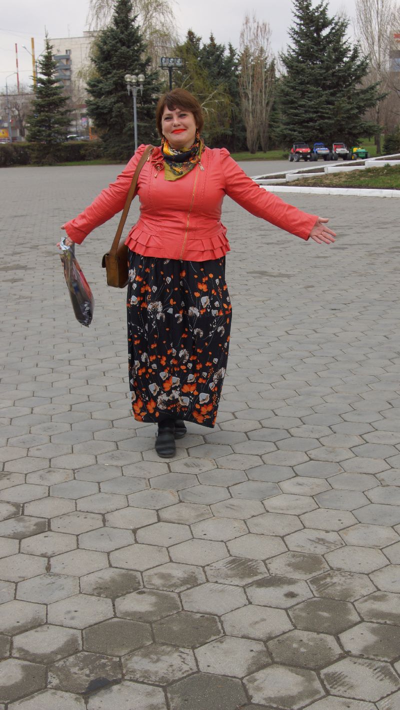 Палантин Ирины, хоть и сиреневый, но к красной куртке подошел отлично.