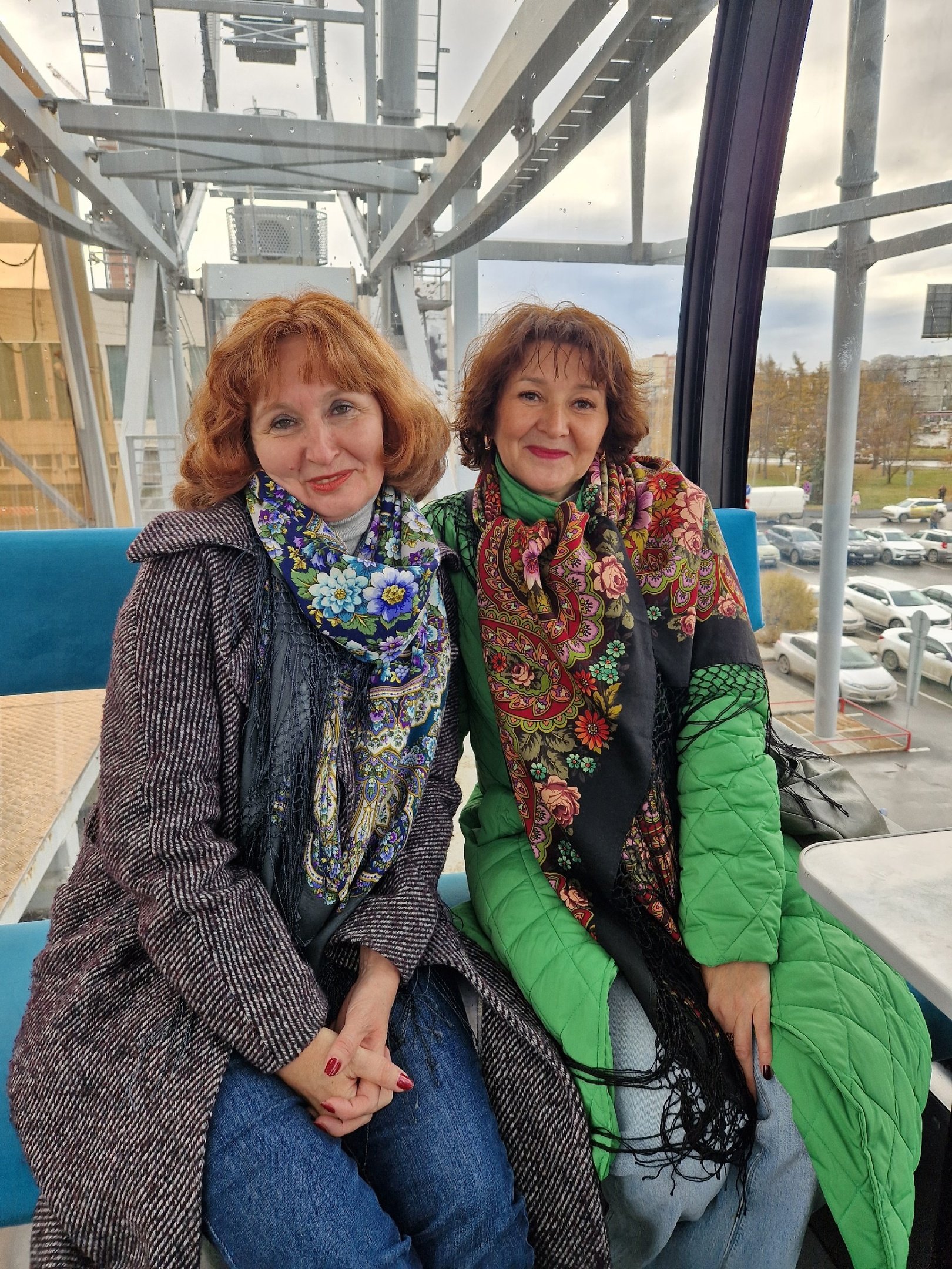 А вот мы напротив Татьяны и Галины на верхотуре колеса оборзе