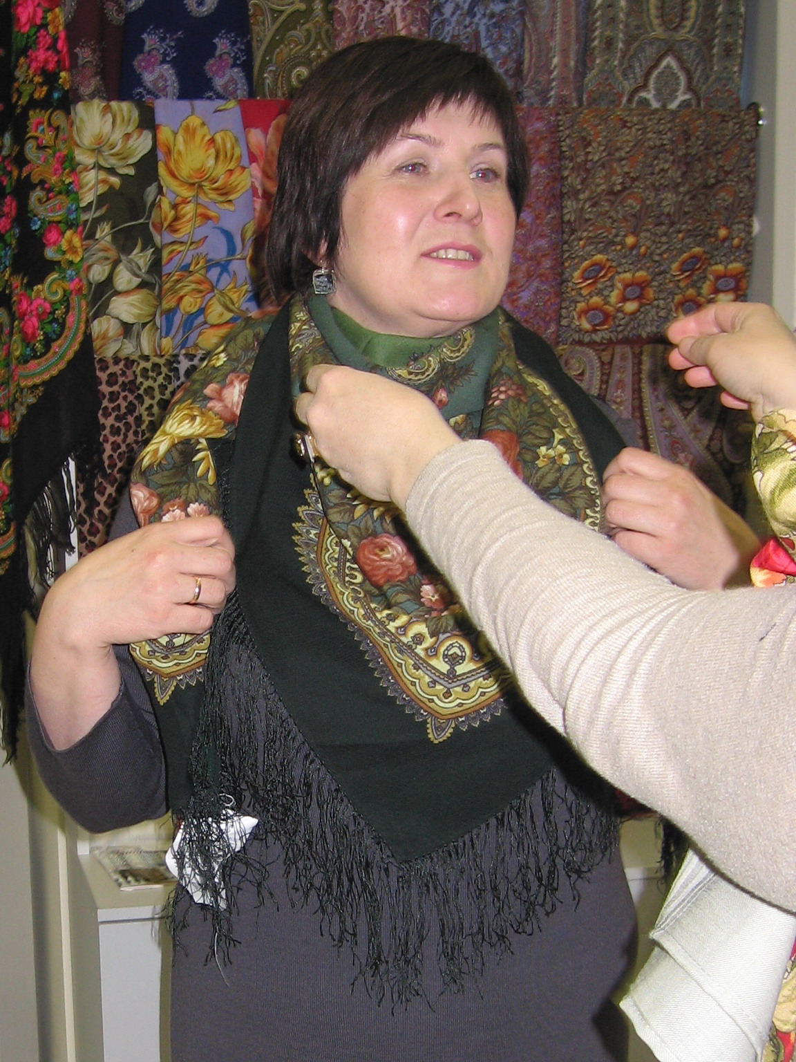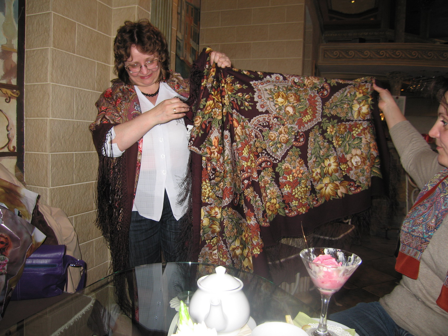 Сегодня мы восхищались новинками, раритетами, сравнивали всевозможные колориты, примерили, наверное, половину ассортимента, провели мастер-классы по завязыванию и драпировки шёлка, что-то купили, что-то продали, что-то поменяли и многое-многое другое. После примерок сразу стало наглядно понятно, без чего жить не можешь, а что может и подождать. Я приехала к 12.00, а дома была в 18.30. По нашим довольным лицам думаю будет понятно, какое у всех настроение