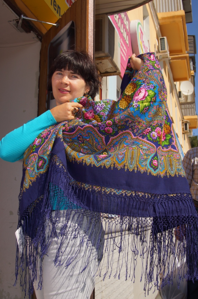 Ну и Княжеский 680-32, на фото лучше смотрится на мне чем в жизни, летний отпускной такой платок.