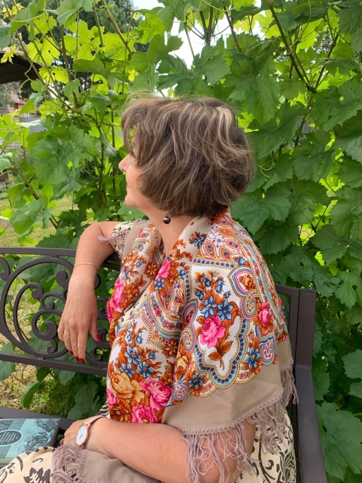 Таня Ситникова, спасибо что щедро делишься с нами своими отпускными образами в шёлковых шалях! За настроение)