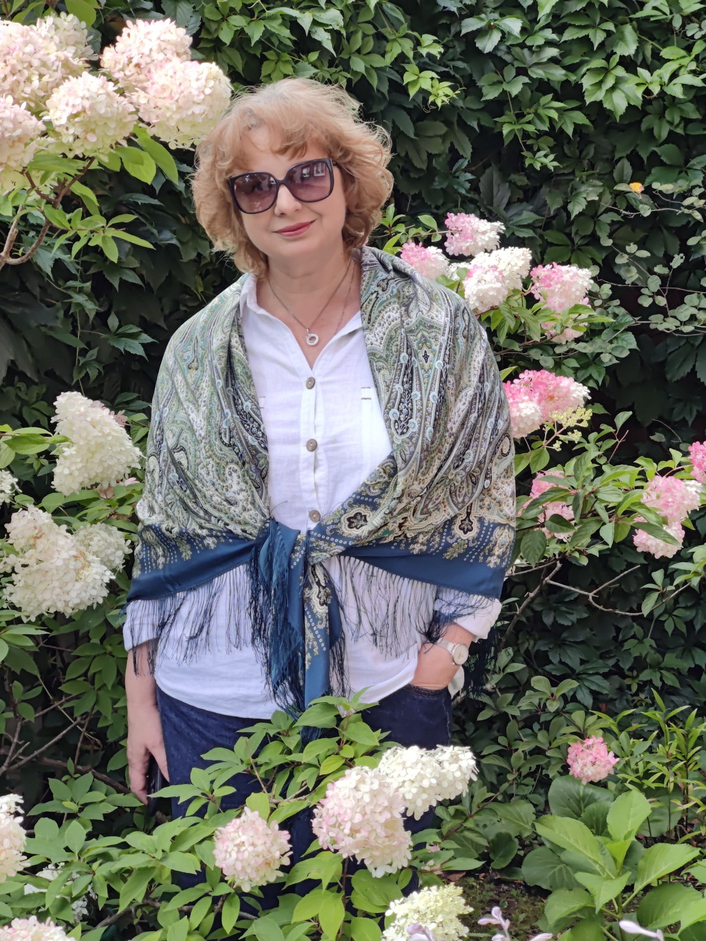 Таня, очень понравился на Вас Берег грёз и кувшинка. Мне интересно, кто какие цветы видит на этой шали. Я вот видела георгины.Сравнение с кувшинкой поразило и впечатлило.