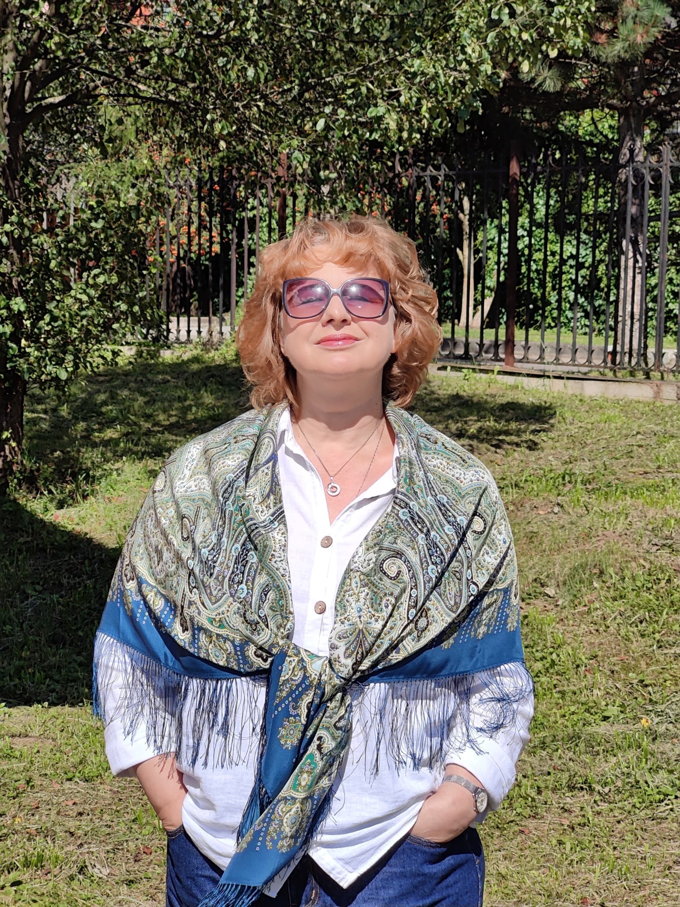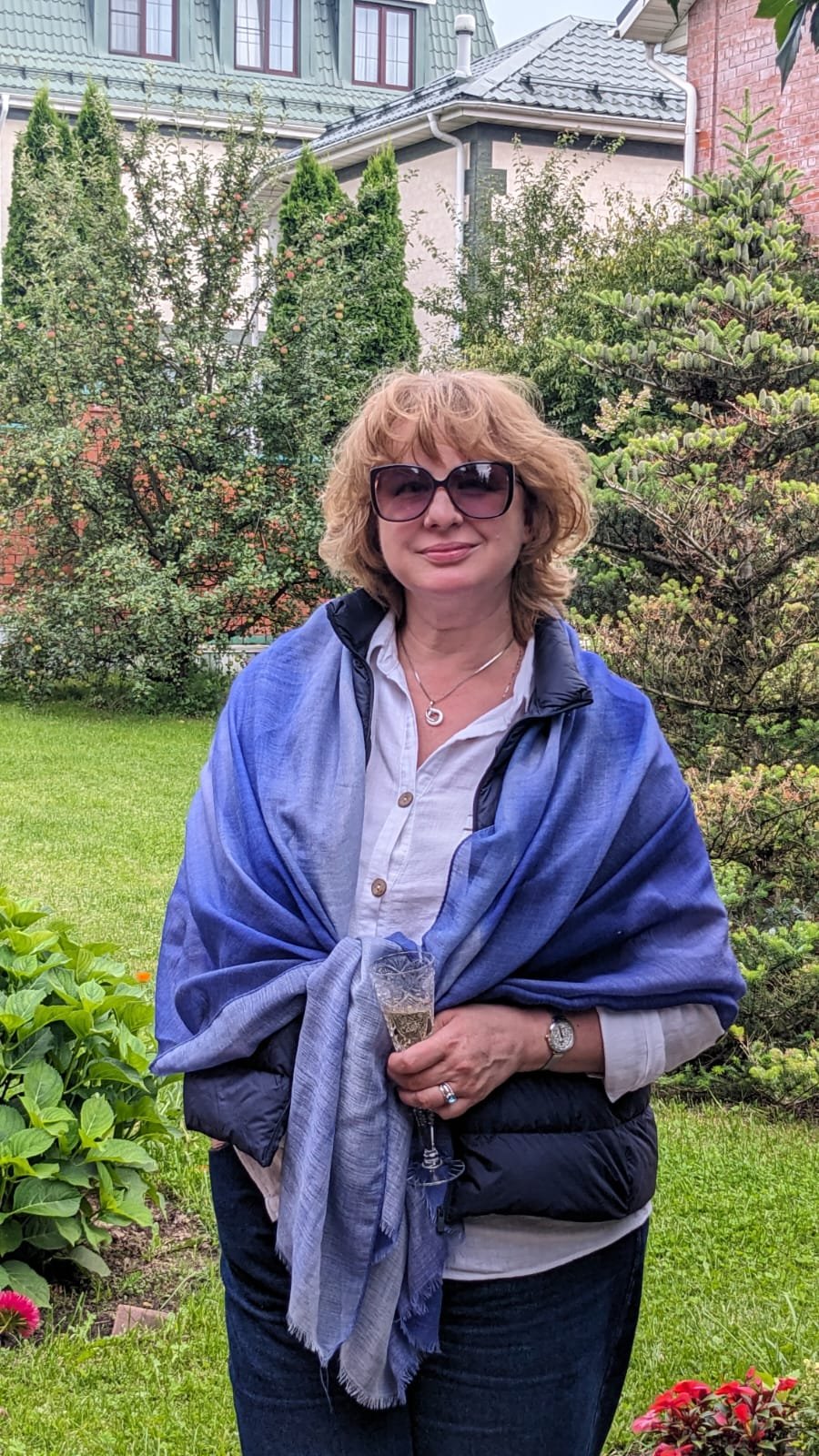 Наталия, спасибо за Зимнее солнце в этом колорите, недавно искала его посмотреть. Вам, конечно, синие шали и палантины безусловно к лицу.