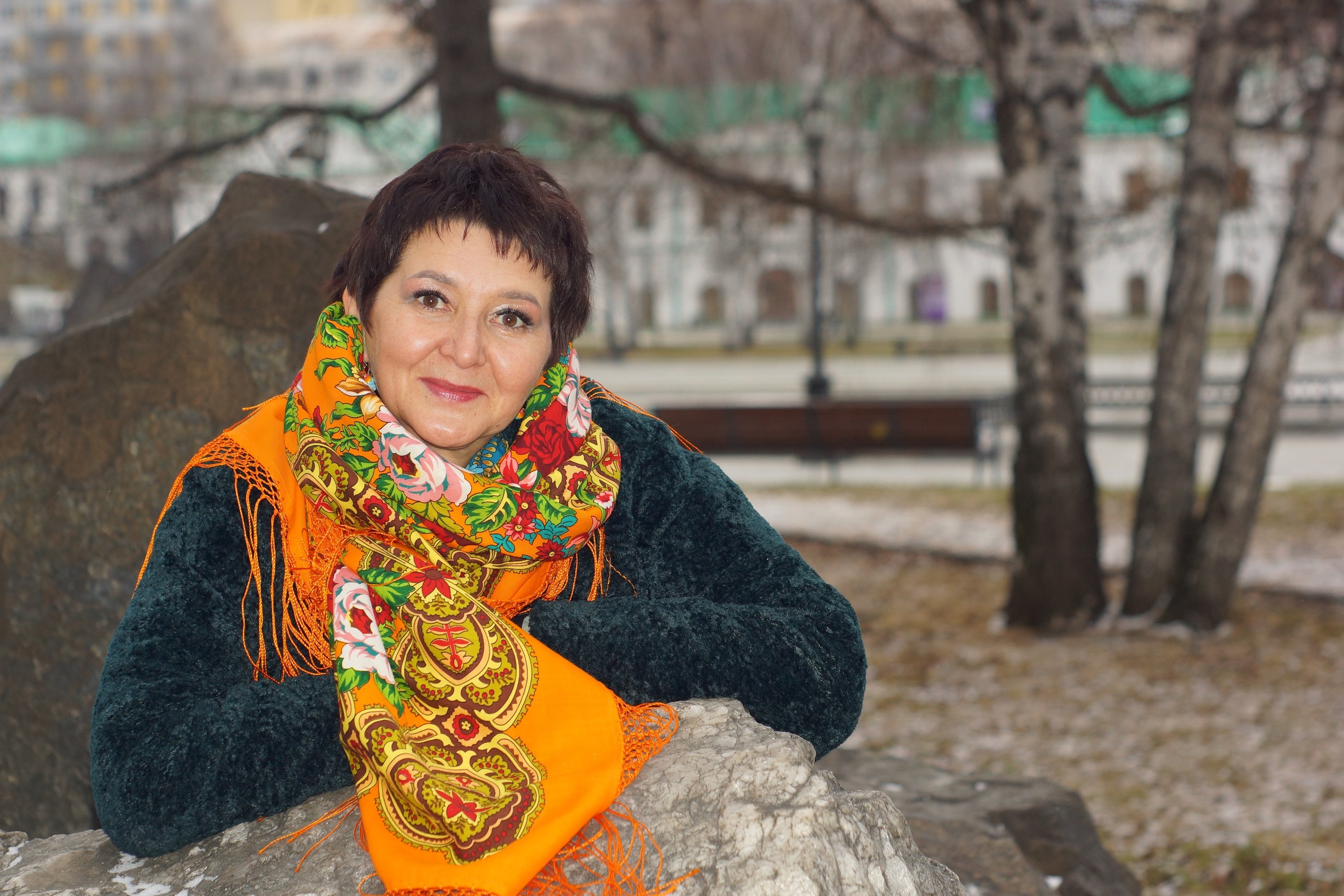 ! В шали никогда не сомневалась, куплена давно и за дорого, но тут особенно задорно, ярко, абсолютно гармонично. Особенно понравилось на голове.
