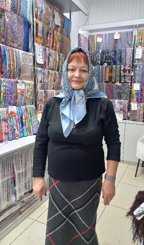 А купила я в Иркутске платок в размере 146 см, с шёлковой бахромой Изюминку, вид 1.Валерии Фадеевой.