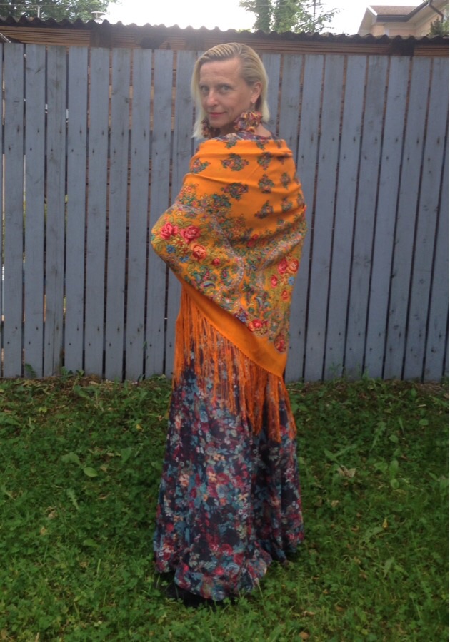 Демонстрируем ношение платков и шалей.